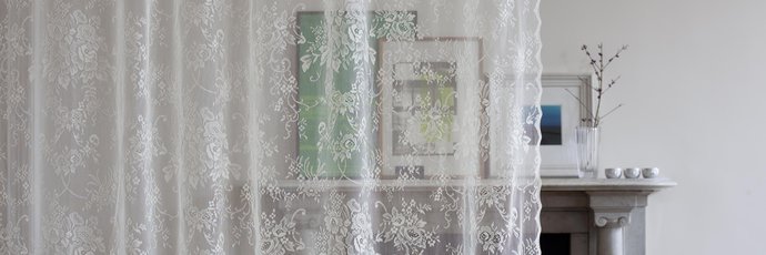 Еще одно очень важное отличие ткани из Мадраса заключается в том, что в основном она представляет собой ткань с «подстриженной» лицевой стороной. Нити утка (по горизонтали) вотканы в основу там, где есть узор, и остаются на поверхности ткани там, где этот узор отсутствует. Затем ткань пропускается через машину по обрезке верхних нитей, которые срезаются, открывая узор и участки прозрачной ткани. Наше оборудование по обрезке принимает ткань не более 175 см шириной. Это и делает данную ширину максимально возможной для тюля из Мадраса, требующего обрезки лишних верхних нитей.