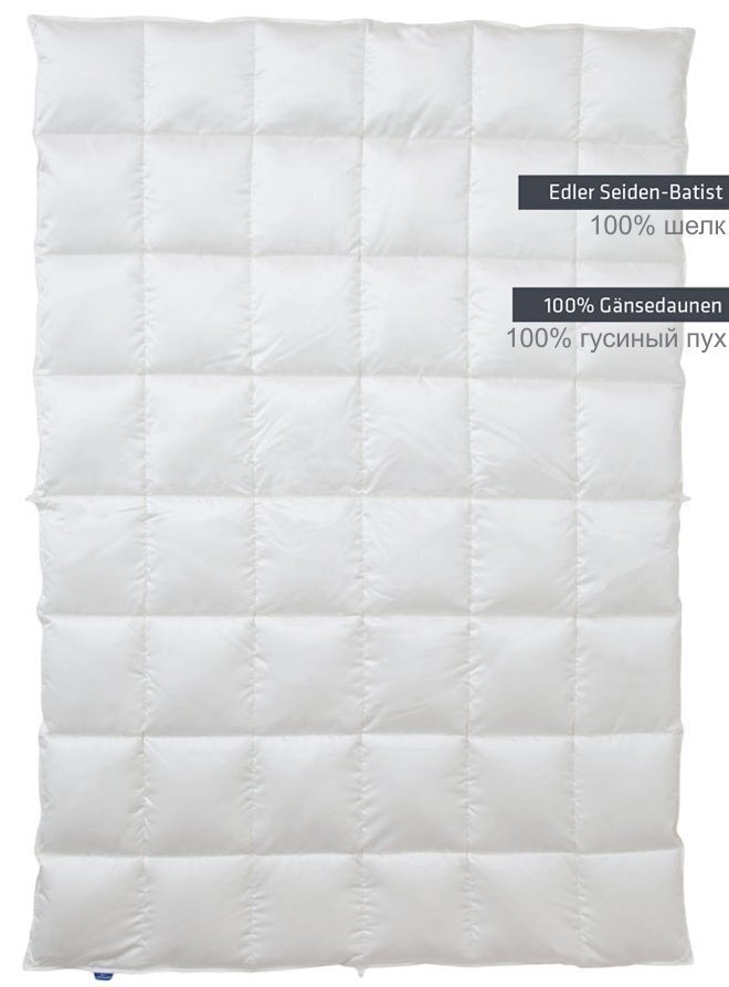 Наполнитель: 100% белый гусиный пух новый, класс I, Происхождение: Европа
