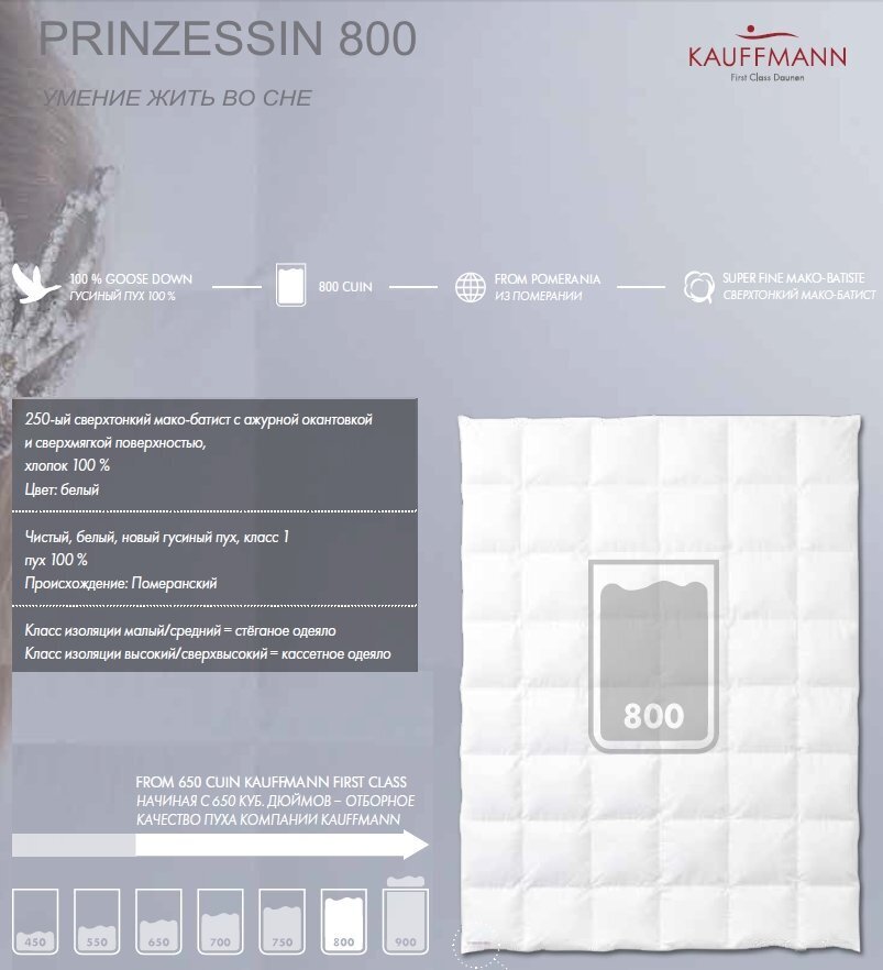 Наполнитель: 100% гусиный белый пух , класс I, Происхождение: Померанский