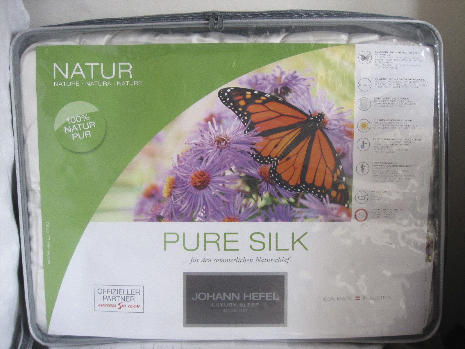 Природная сила охлаждения дикого шелка является идеальным для заполнения удивительно бодрящего летом одеяло. Одеяло Hefel Pure Silk – приятное и нежное из натурального шелка для естественной температуры сна. Натуральный шелк идеальный теплорегулятор с высоко эффективной temperaturausgleichende функцией, благодаря природным свойствам шелка. Это очень актуально в отопительный сезон, когда в квартирах бывает слишком жарко. Кроме того, забота о красоте тела, в частности, кожи, побуждает использовать шелковые волокна, известные своим омолаживающим эффектом.