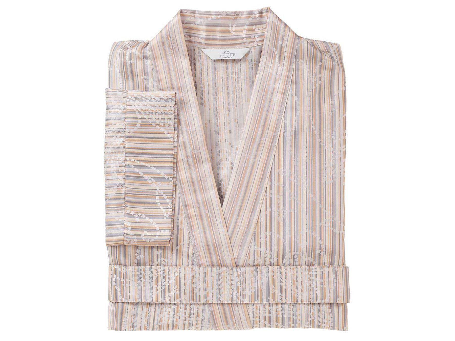 Это кимоно демонстрирует тонкий узор орнамента в горошек, который нежно лежит над полосой натурального цвета. Халат имеет боковые карманы и рукава 3/4. Короткая длина придает ему юношескую легкость.