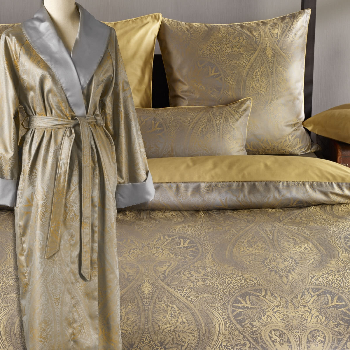 Изысканная ткань с шелковым отливом и утонченным орнаментом рисунка делает неповторимой коллекцию Curt Bauer.