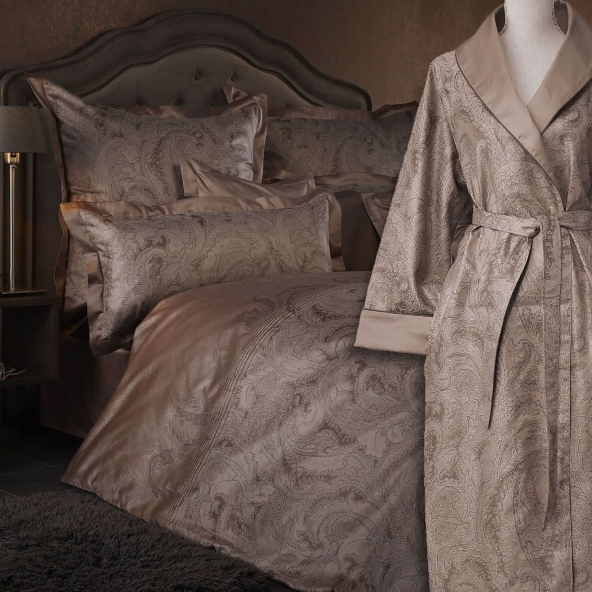 Изысканная ткань с шелковым отливом и утонченным орнаментом рисунка делает неповторимой коллекцию Curt Bauer.