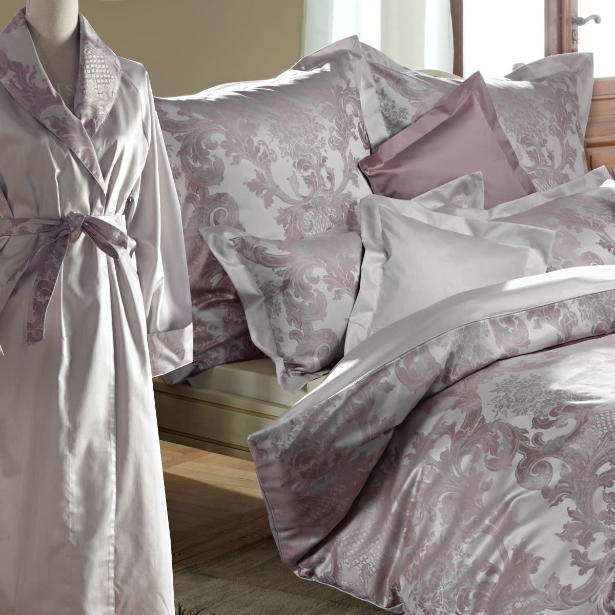Изысканная ткань с шелковым отливом и утонченным орнаментом рисунка делает неповторимой коллекцию Curt Bauer.