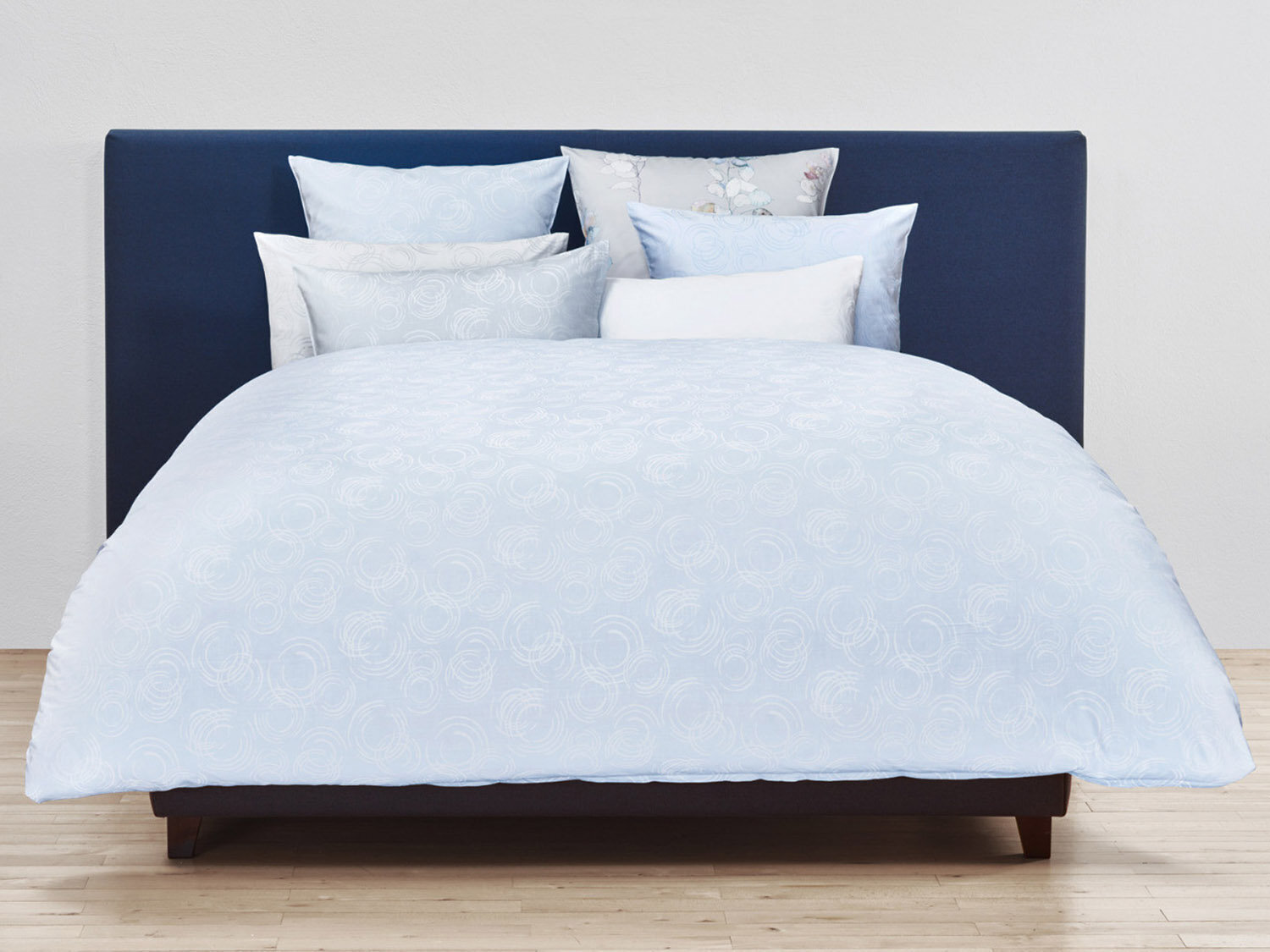 Свежий мотив постельного белья Christian Fischbacher "Acqua" напоминает поверхность воды под дождем. Свободно нарисованные чернилами и кисточкой кольца, которые лежат в основе этого дизайна, были реализованы в жаккардовом плетение. Вечный мотив источает медитативное спокойствие. Постельное белье Christian Fischbacher "Acqua" доступно в 3 цветовых вариантах: белом (010), сером (035), голубом (201)