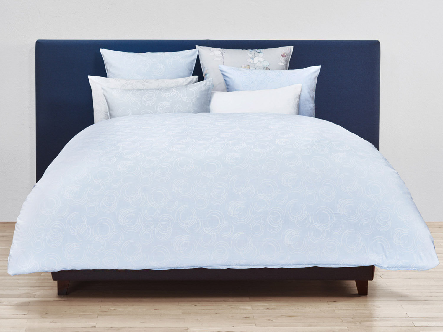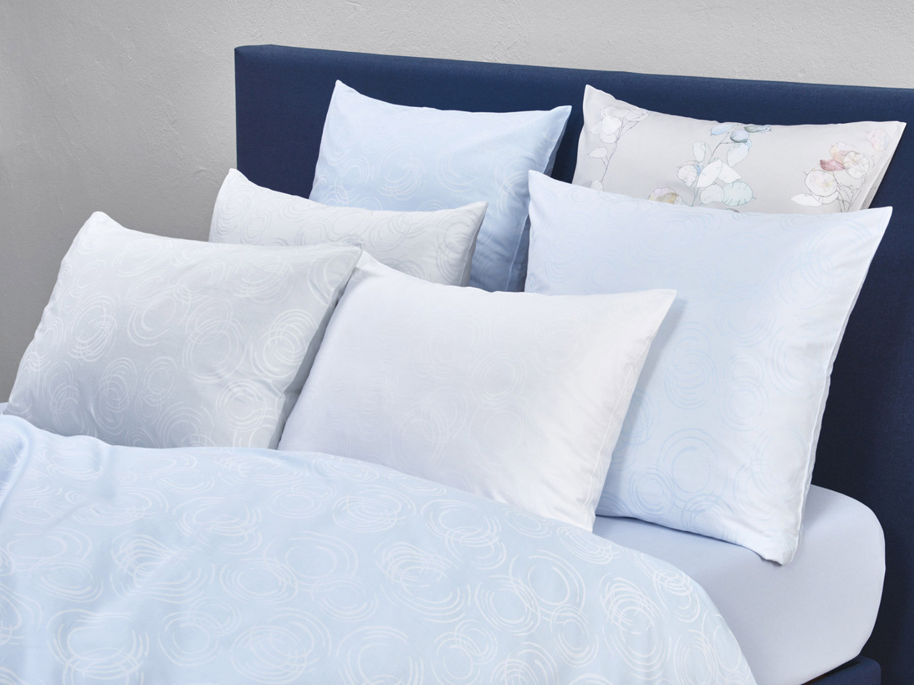 Свежий мотив постельного белья Christian Fischbacher "Acqua" напоминает поверхность воды под дождем. Свободно нарисованные чернилами и кисточкой кольца, которые лежат в основе этого дизайна, были реализованы в жаккардовом плетение. Вечный мотив источает медитативное спокойствие. Постельное белье Christian Fischbacher "Acqua" доступно в 3 цветовых вариантах (с темными кольцами) : белом (010), сером (035), голубом (201)