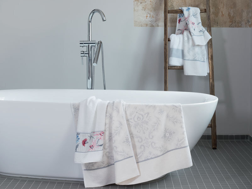 Ностальгические эхо для ванной в стиле ретро. BELLEVUE идеально подходит для сочетания с дизайном CHELSEA Feiler благодаря своим сдержанным цветам в белом и сером цвете.