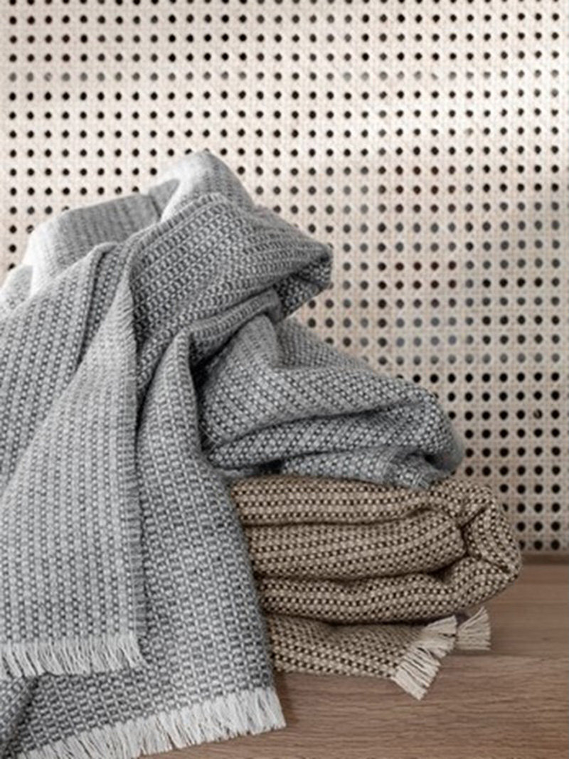 Одеяло- плед Bricks Elvang мягкое, уютное и отличается тонким рисунком, который по форме напоминает маленькие камни - дань уважения улицам Копенгагена с их булыжной мостовой.