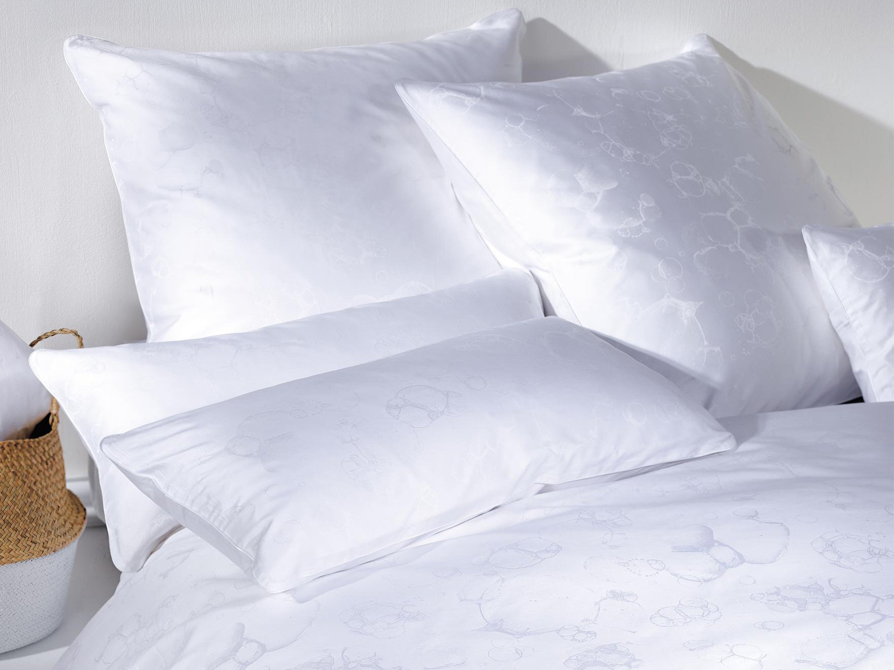 Детали: наволочки имеют кант по периметру и закругленные углы, нижняя (обратная) сторона изделий однотонная без узора