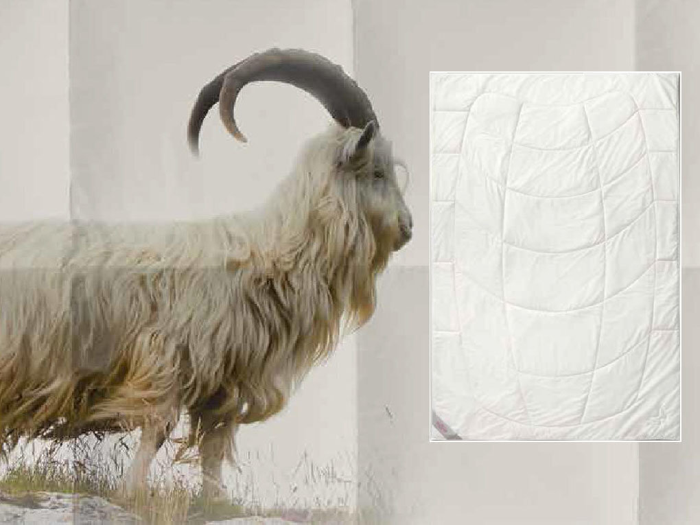 Гималайский кашемир отличается тончайшей извитостью натуральной шерсти и абсолютно непревзойденной способностью удержания тепла. При равной тепловой защите кашемировые одеяла легче всех других. Несравненная тонкость козьего пуха дает удивительную мягкость.