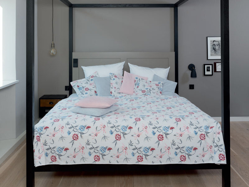 Шенилл легко узнать по характерной выпуклой нитке, которая контуром напоминает движение гусеницы (по-французски гусеница — chenille). Из-за ворсистой структуры ткани создается приятный эффект игры цвета.