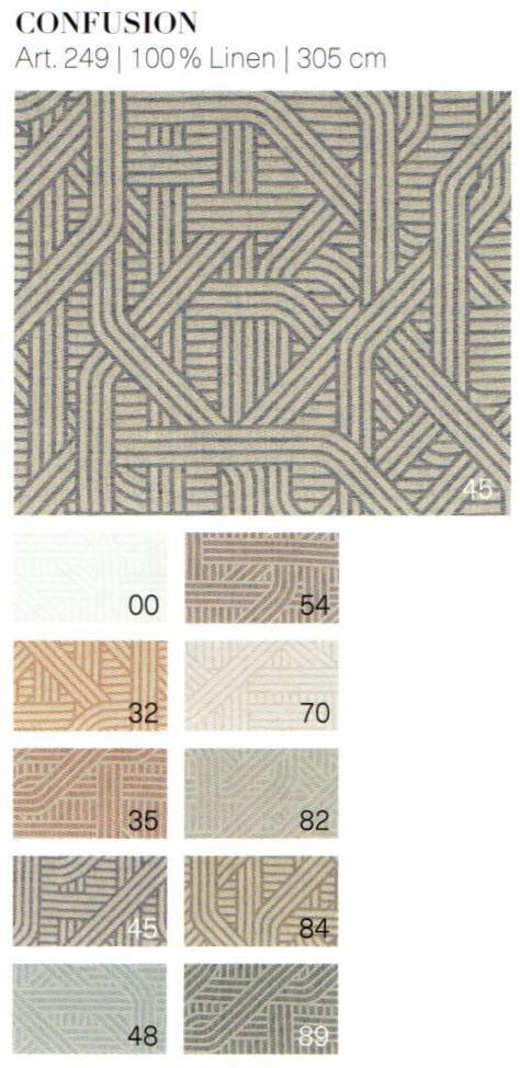 Цвет: 00 (белый), в сочетании с натуральным льном: 32 (желто-оранжевый, цвет календулы), 35 (красный, красно-коричневый), 45 (делфтский синий), 48 (голубой), 54 (сиреневый), 70 (льняной), 82 (светло-серый), 84 (гранитный), 89 (темно-серый, антрацит)