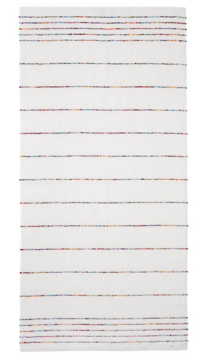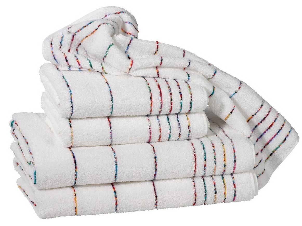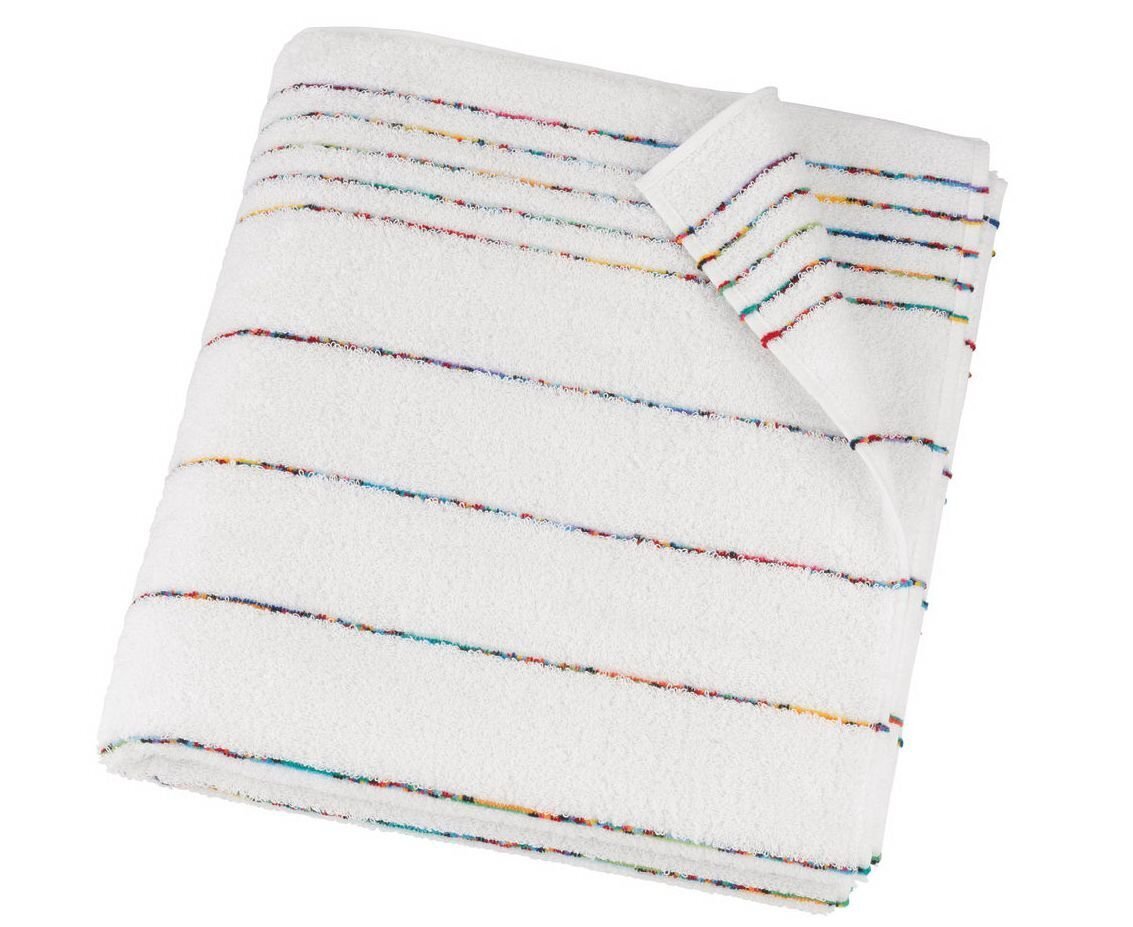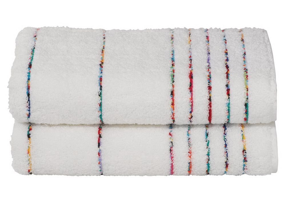 - Махровое белое полотенце с декоративными полосками из разноцветной нити шенилл