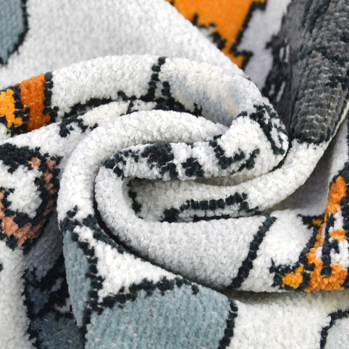 Шенилл легко узнать по характерной выпуклой нитке, которая контуром напоминает движение гусеницы (по-французски гусеница — chenille). Из-за ворсистой структуры ткани создается приятный эффект игры цвета.