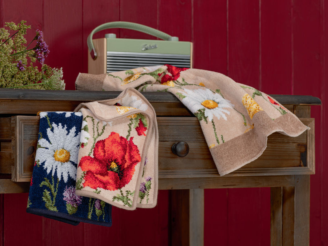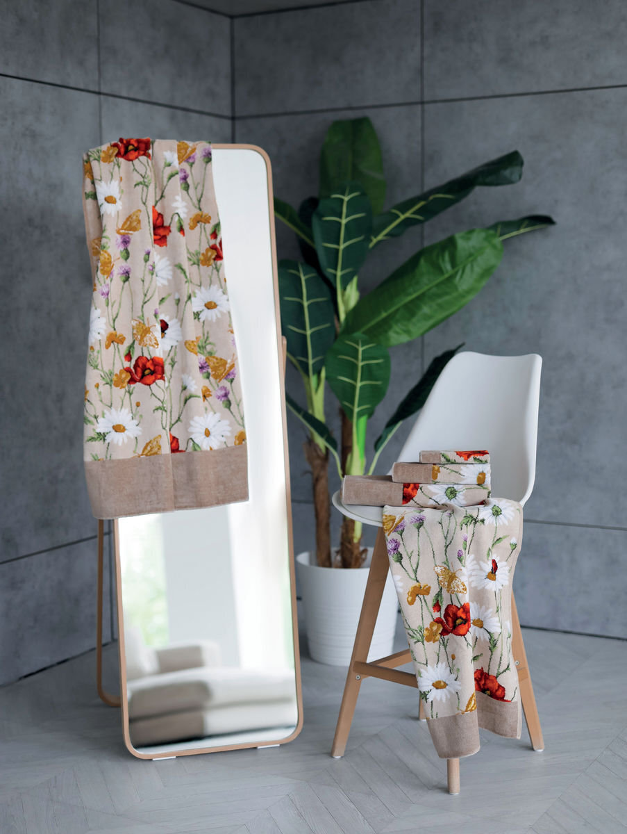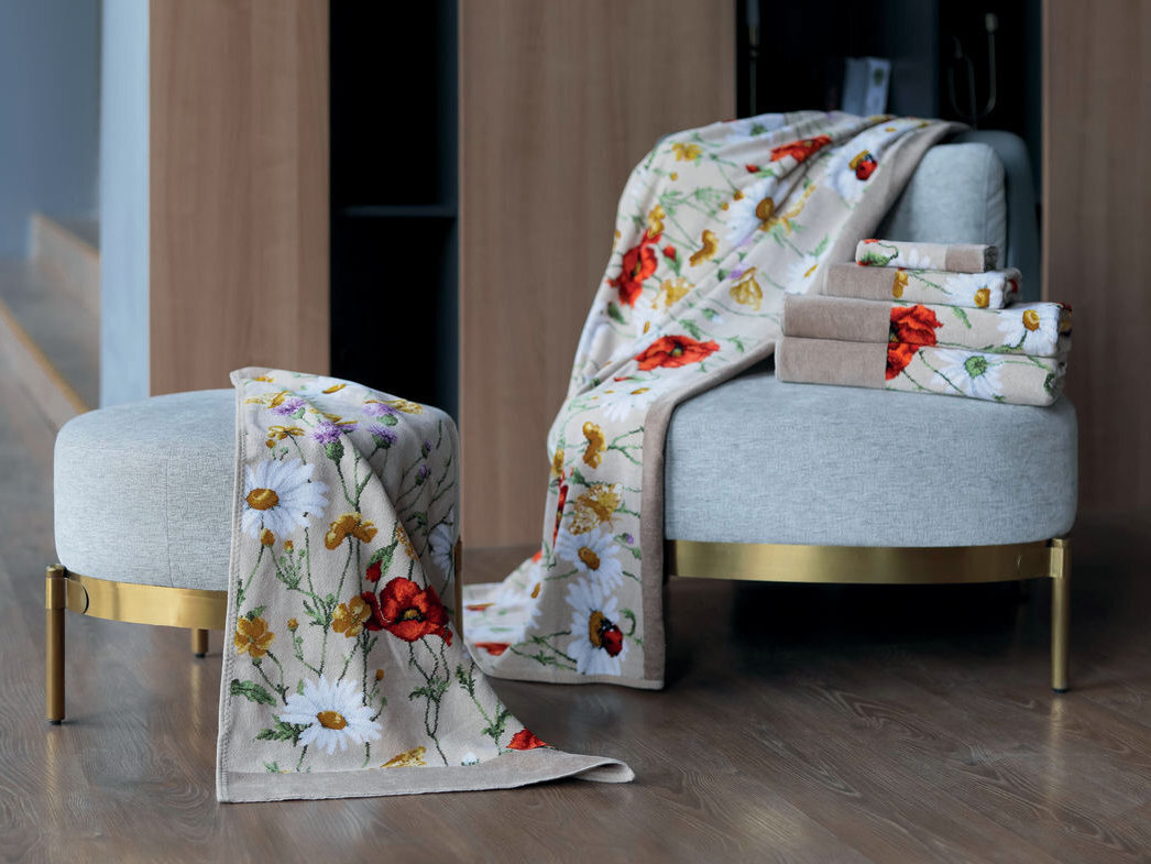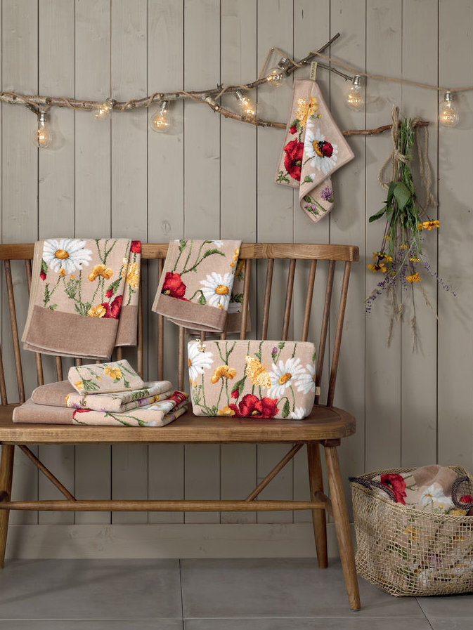 - Коллекция состоит из полотенец, тюрбана, косметичек