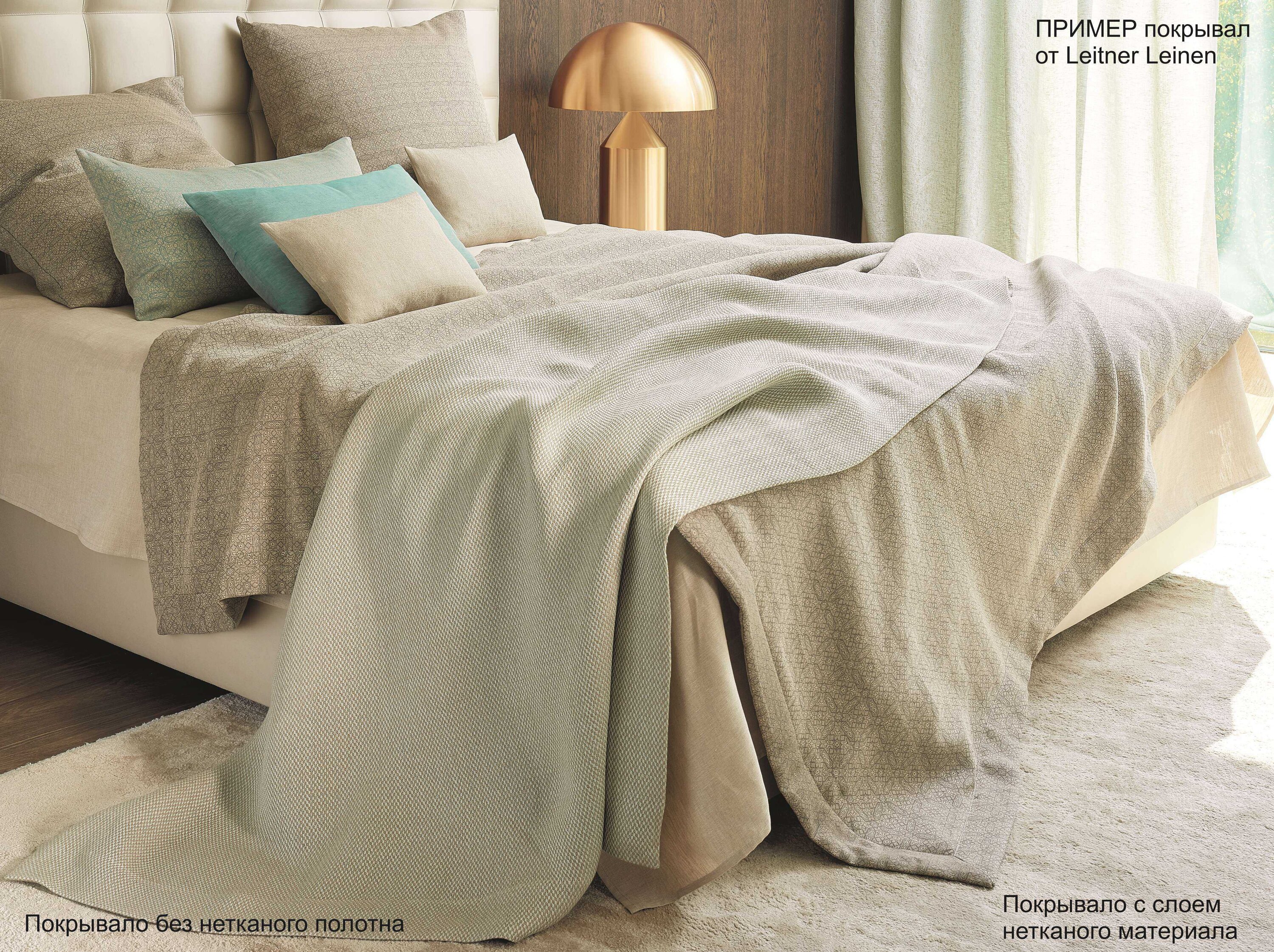 - В покрывале со слоем нетканого материала (флисом) ткань покрывала связана с подкладом через боковые швы. По запросу можно также обработать слой кровати с флисом (нетканым материалом) с помощью точечного прошива , в результате чего верхняя и нижняя ткани закрепляются в нескольких точках пледа с нетканым материалом. Отделка по краям покрывала сшита из ткани спереди и имеет ширину 7 см. По запросу передняя и задняя часть покрывала может быть изготовлена в другом дизайне и цветовой гамме.