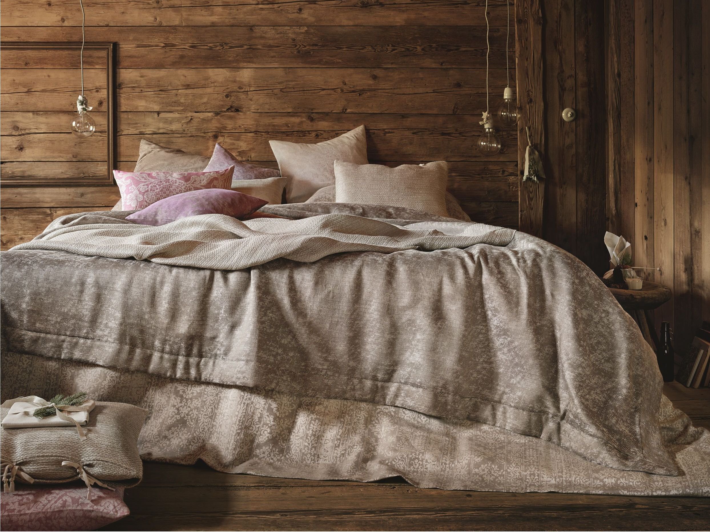 Легкий жаккардовый рисунок на слегка пестром фоне придает вашей кровати празднично элегантный штрих. Натуральные цвета подчеркивают прекрасный характер искусно сплетенной полульняной ткани.
