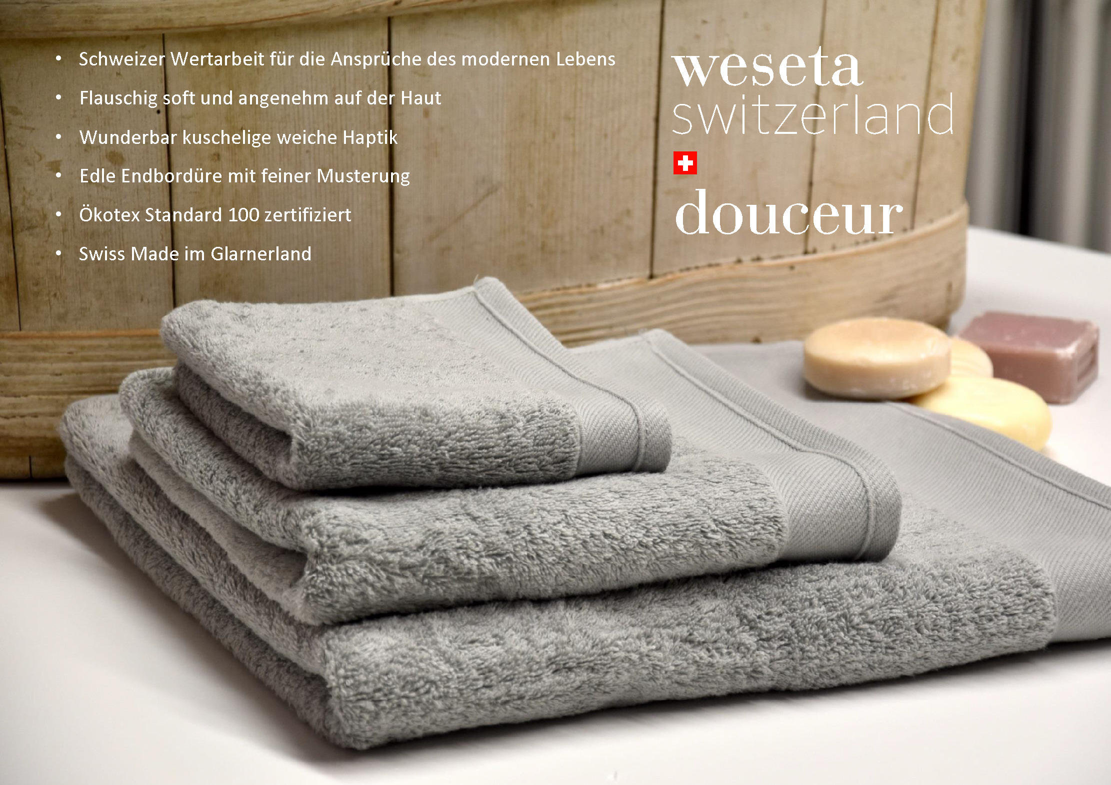 Удивительно приятное швейцарское махровое полотенце DOUCEUR с элегантной концевой кромкой, дополняют коллекцию коврики DOUCEUR. Для любителей четкого дизайна. Благодаря технологии ткачества Weseta, она особенно прочная и мягкая. Коврик для ванной Dreamtuft идеально подходит для данных полотенец или можно использовать коврики (полотенца для ног) DOUCEUR. Швейцарский топовый продукт "Swiss Made", контролируемый поштучно вручную.