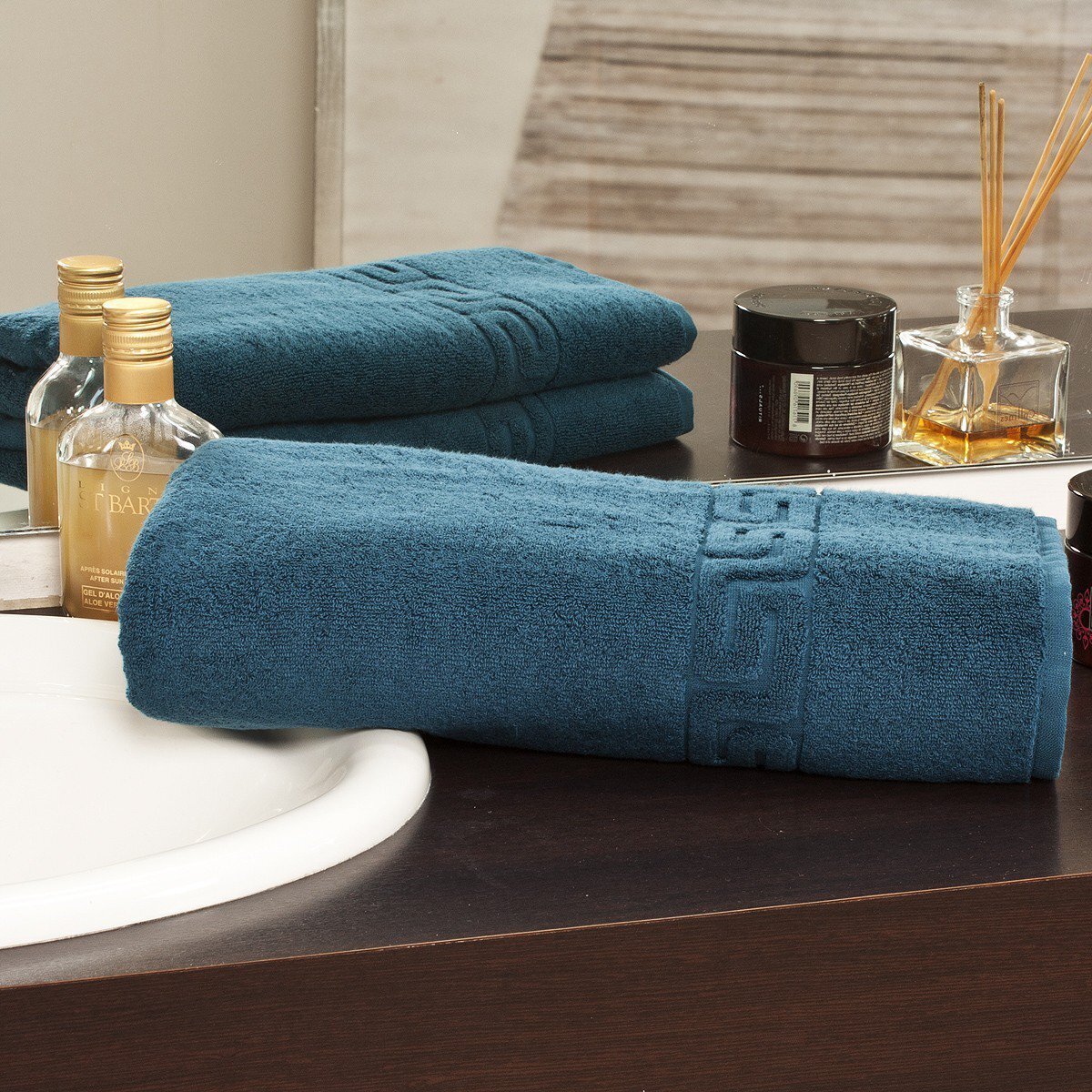 - Чрезвычайно высокая поглощаемость влаги за счет использования 100% высококачественного длинноволокнистого хлопка США, 420g/m2 . Полотенце высохнет за короткое время.