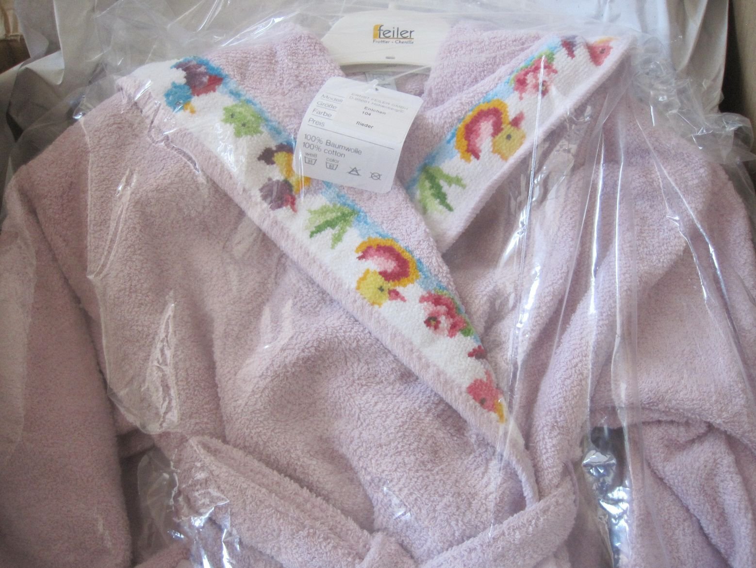В наличие на нашем складе: 1 халат в сиреневом (светло-лиловом) тоне.