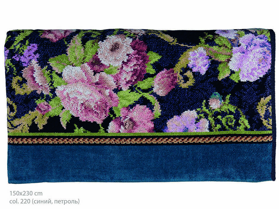 ELISAVETA Feiler шенилловое покрывало (плед) 150x230cm. цвет канта: синий, петроль (220)