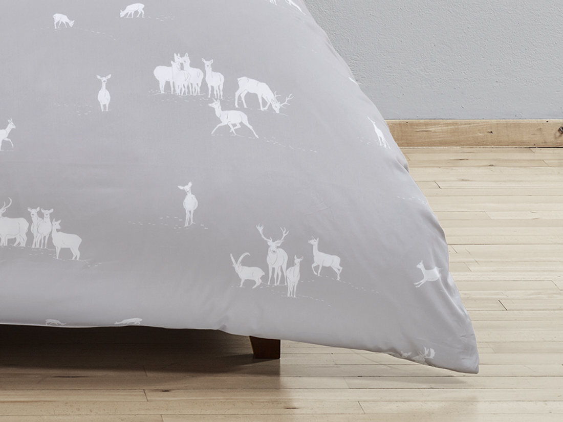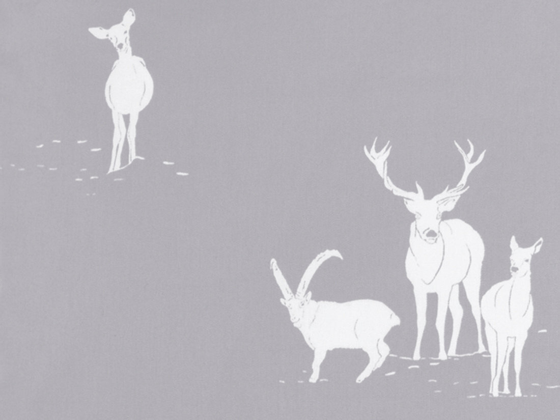 Животных оставляют свои следы на белом, собираются в группы, с любопытством глядя из картины. Живое выражение и движение оленей технически разработаны в двух версиях: на сером фоне и белом фоне.