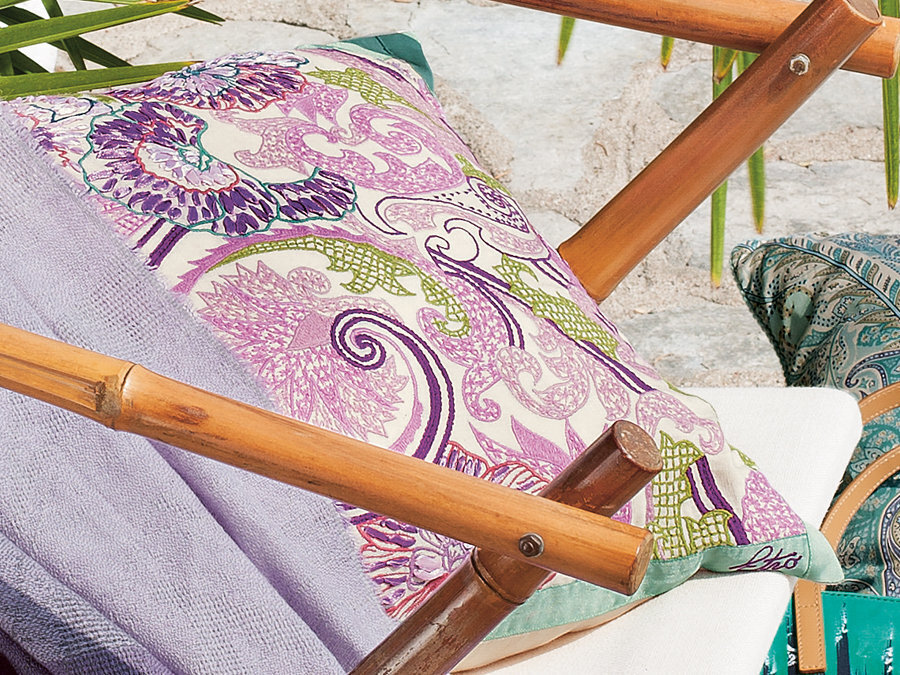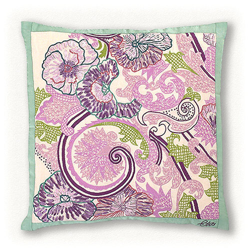 Пышные цветы и усики Пейсли объединены в динамической модели "Blosne". Дизайн привносит яркий акцент на диване. Особенно приятно это цвет в сочетание фиолетового и лилового с зеленым .Подушка имеет очень сложную вышевку, расшитая различными типами стежков, и в этом ее оригинальность
