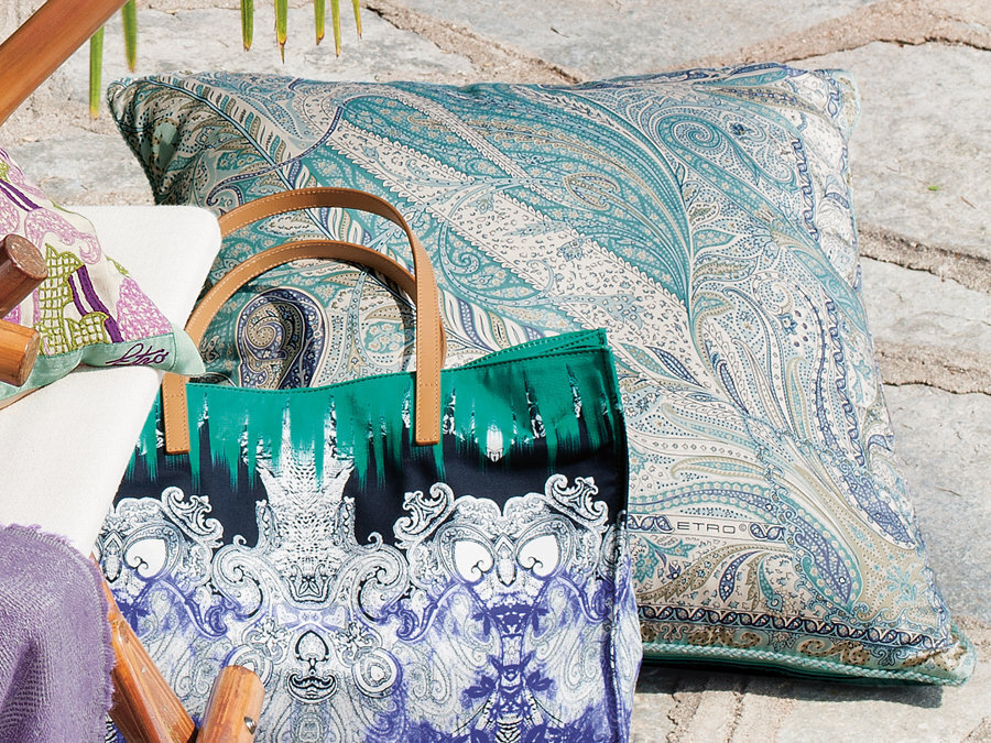 Цвета: мягкие синие и бирюзовые тона с фиолетовым, слоновой кости и песчано-цветные акценты, обратная сторона в деликатном тоне бирюзы