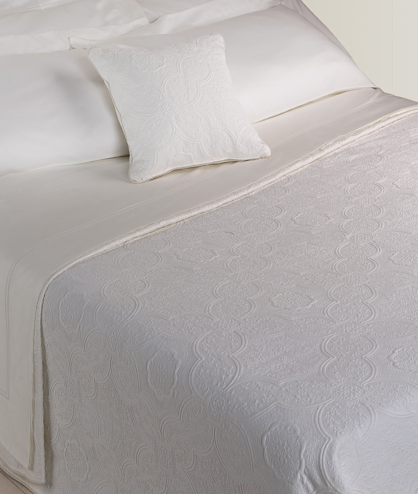"Soglin" является чрезвычайно элегантным покрывало с сшитыми цветочными узорами . Орнаментальные элементы придают дизайну средиземноморскую атмосферу, делая вашу спальню более романтичной. Особенно приятной деталью является мерцающий кант- успешное завершение изящного дизайна.
