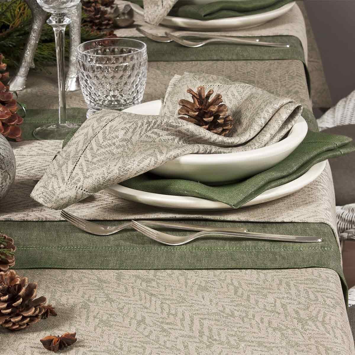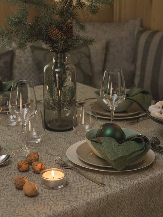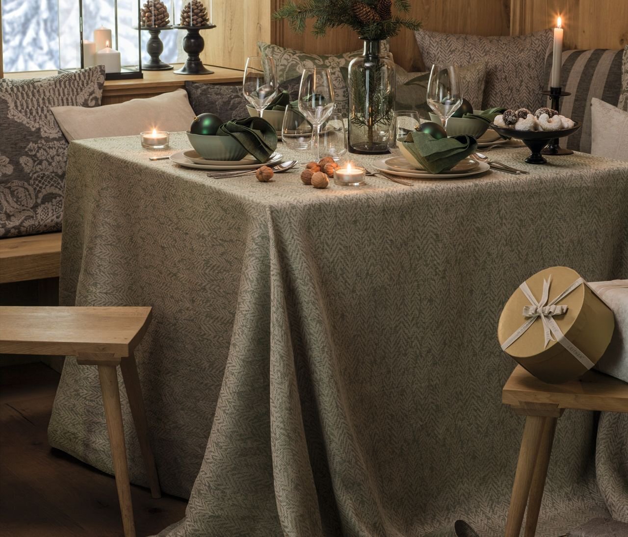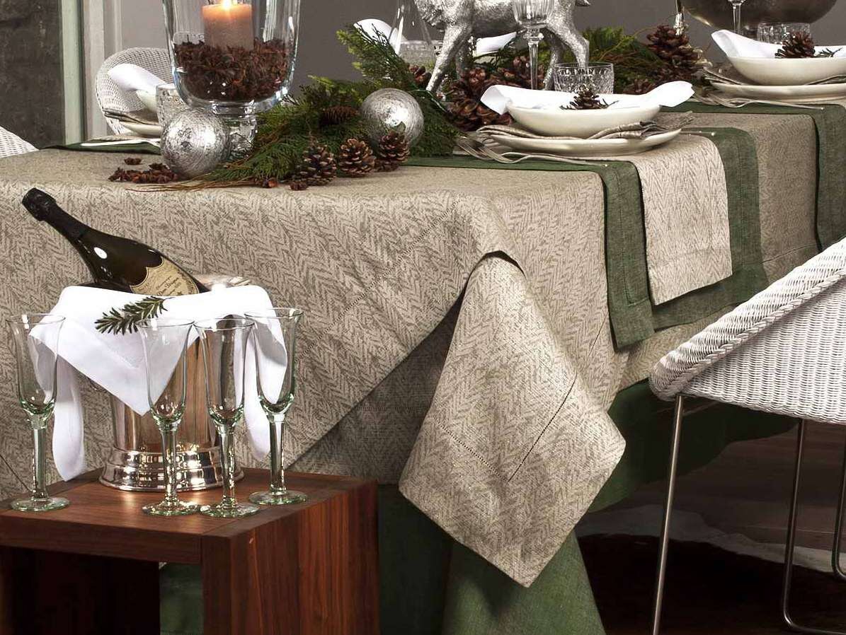 Легкий жаккардовый рисунок на слегка пестром фоне придает вашему столу празднично элегантный штрих.