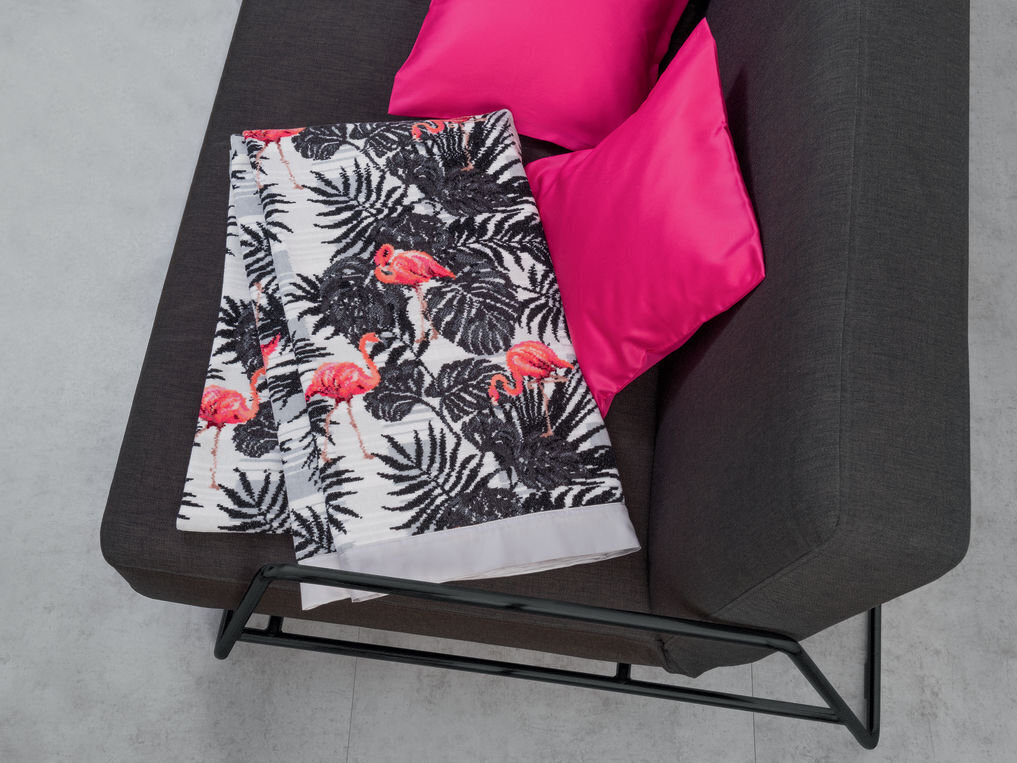 Шенилл легко узнать по характерной выпуклой нитке, которая контуром напоминает движение гусеницы (по-французски гусеница — chenille). Из-за ворсистой структуры ткани создается приятный эффект игры цвета.