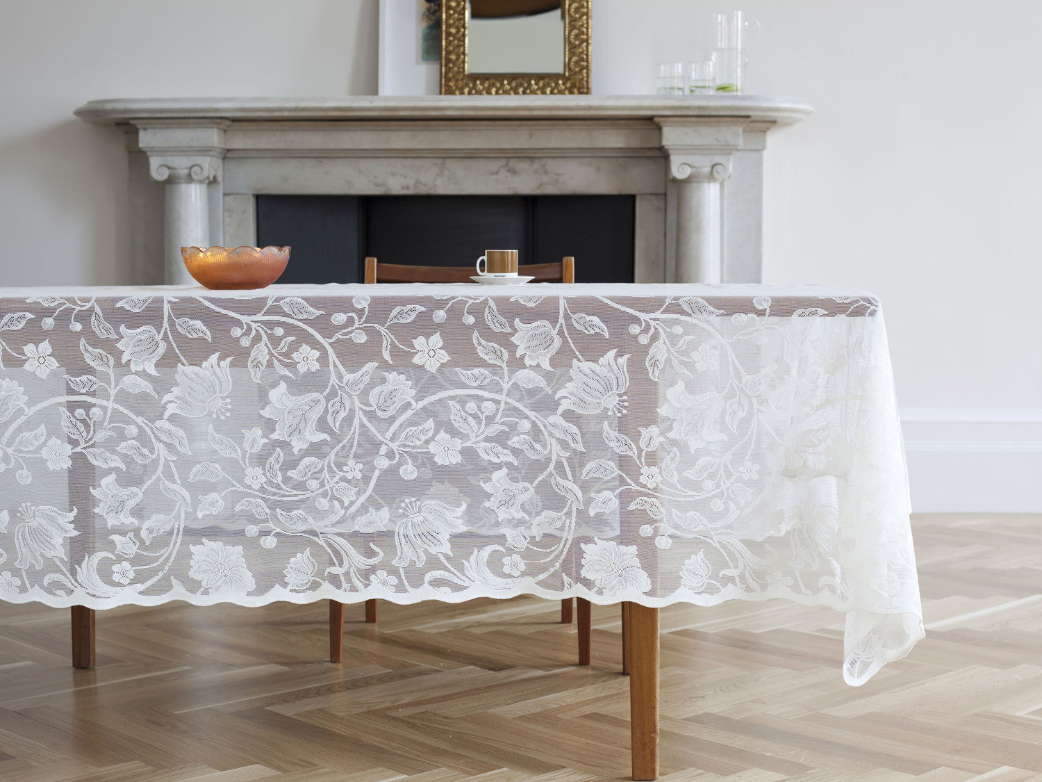 Flora - тончайшая работа английской фабрики MYB Textile, скатерть из настоящего шотландского кружева, производимого на старинных станках способом, который использовали еще 90 лет назад. Кружевные полотна и тюли высочайшего качества этого английского производителя ценятся во всем мире. Очень тонкое полотно, которое выполнено практически полностью из натуральных хлопковых ниток. Синтетические волокна в изделиях MYB Textiles составляют максимум 5%, что является гордостью производителя. Использование полиэстера обеспечивает антистатический эффект (нити и волокна не выбиваются из основы и не смещаются в процессе производства) и придает дополнительную прочность ткани.