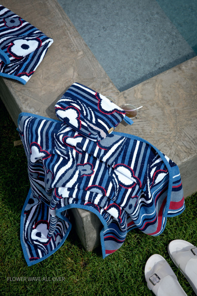 Волны цветов в дизайне FLOWER WAVE, FLOWER WAVE ALL OVER дополняют серию пляжных полотенец для шезлонгов