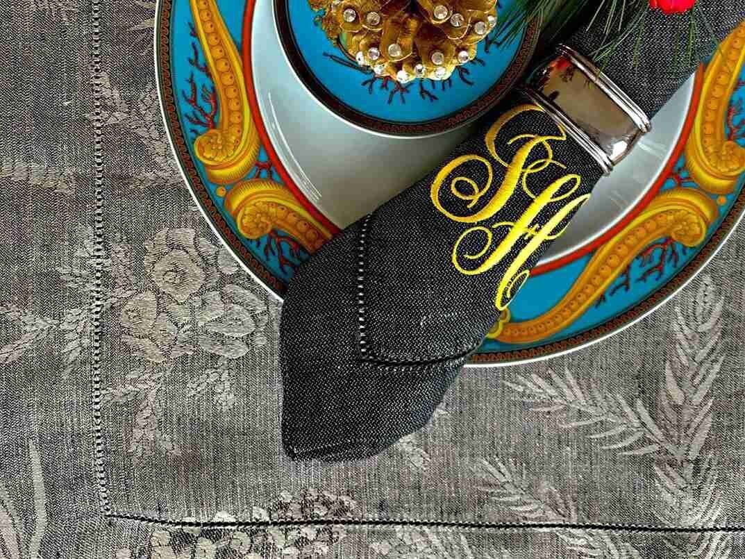 Этот дизайн из 100% льна, пряжи высшего качества с тончайшими нюансами, доступен в виде салфеток под тарелки, настольных дорожек, скатертей, которые привнесут шарм вашей кухне и столовой.