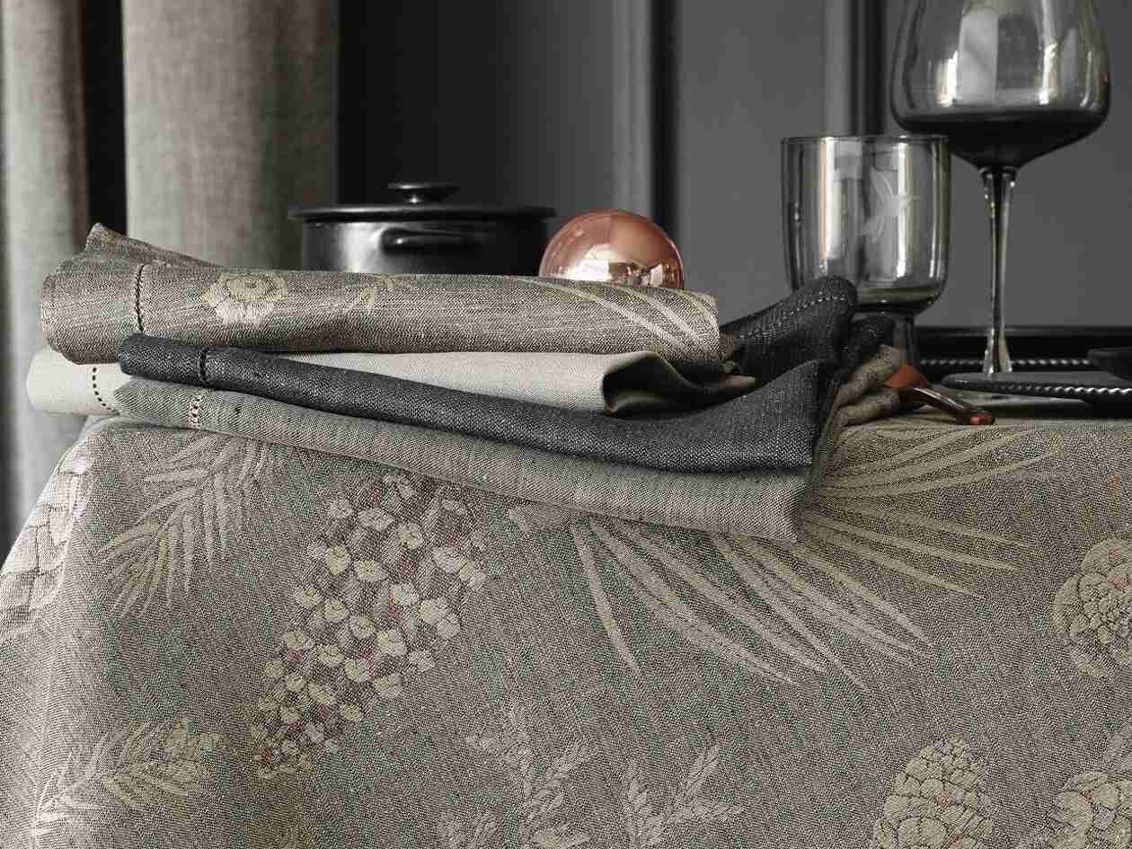 - коллекция FORESTA включает: полульняные кухонные полотенца 50х70 см , льняные салфетки 47х47 см, сеты под тарелку 38/50, 44/56 см, дорожки для стола, скатерти и набор салфеток