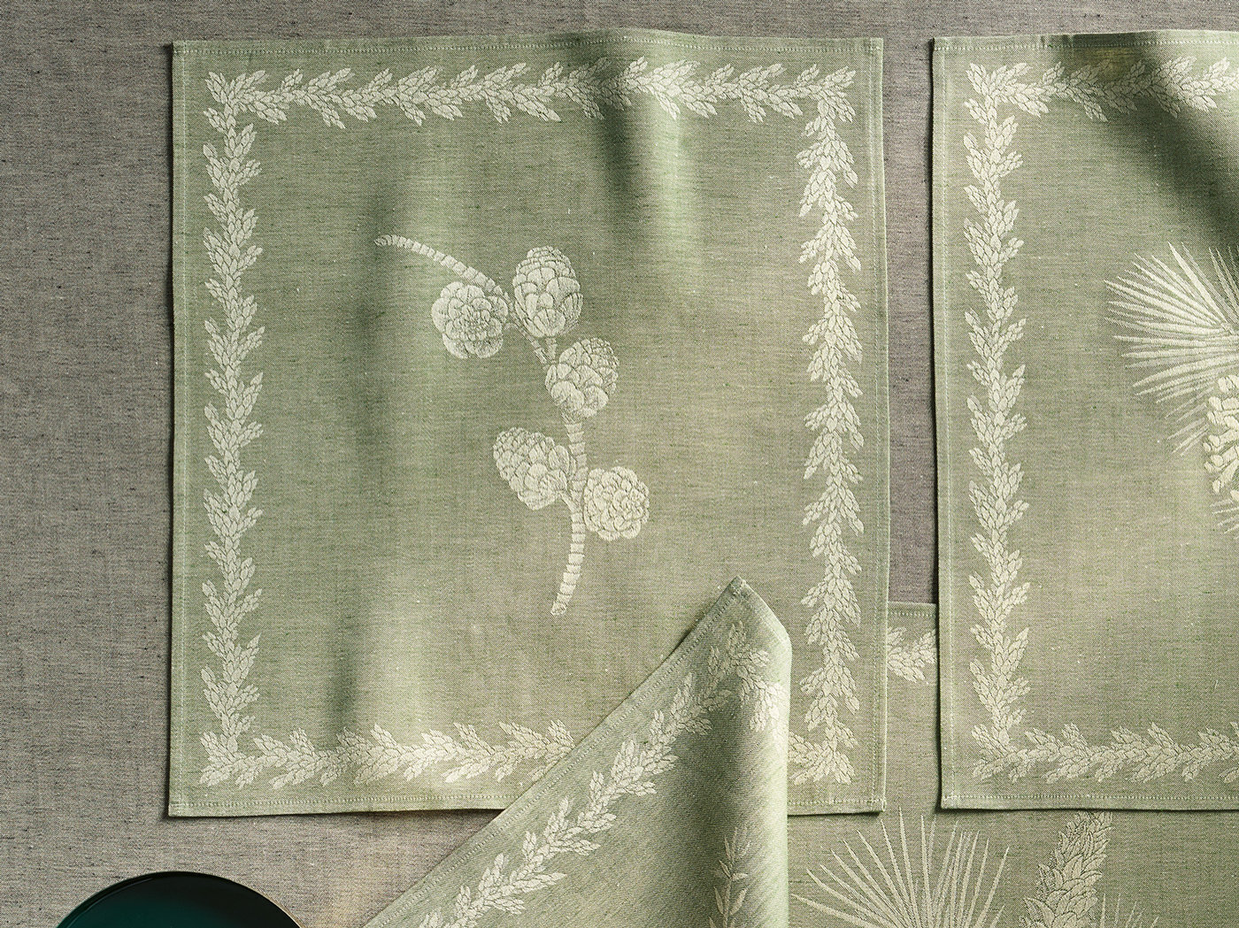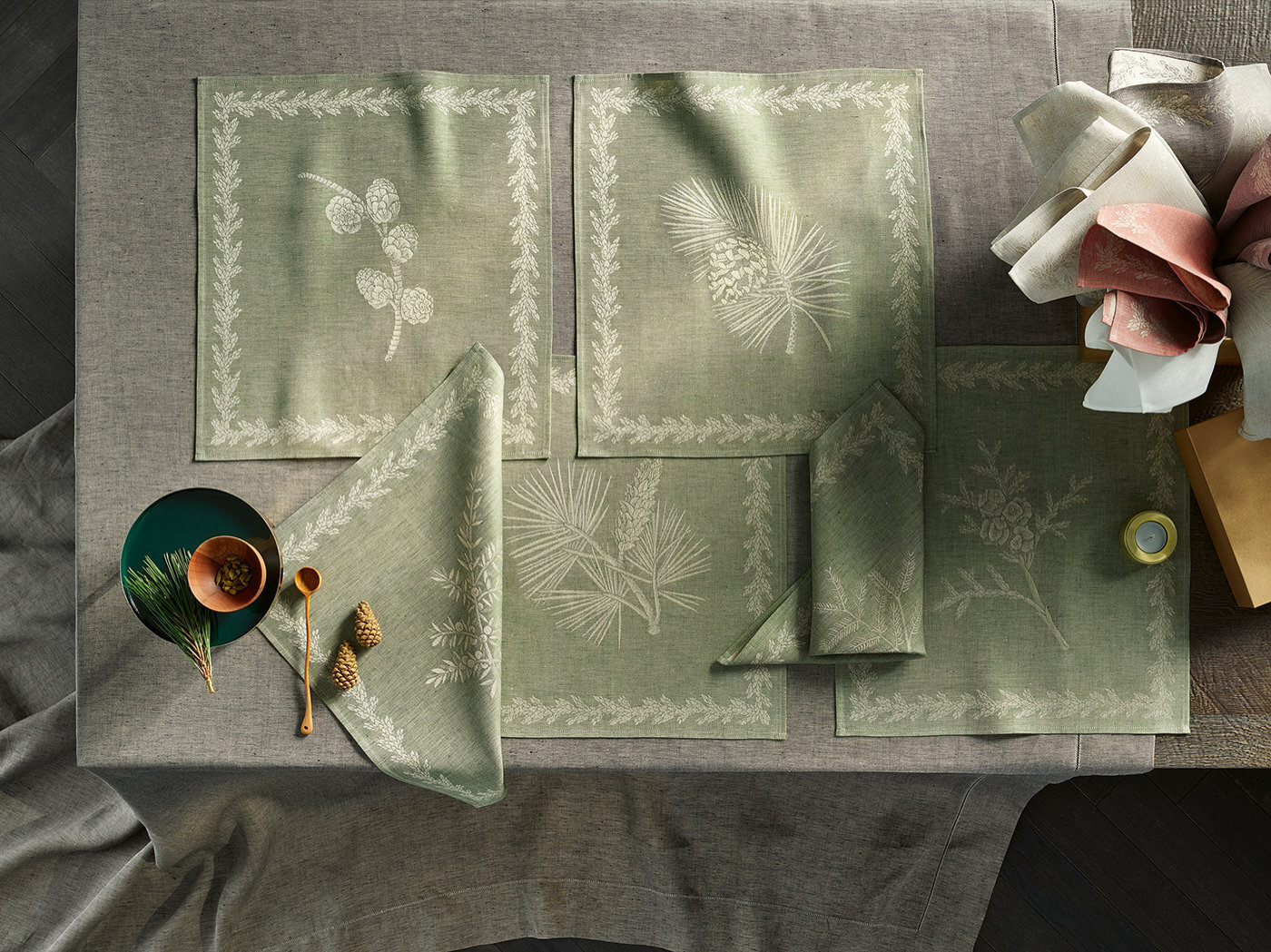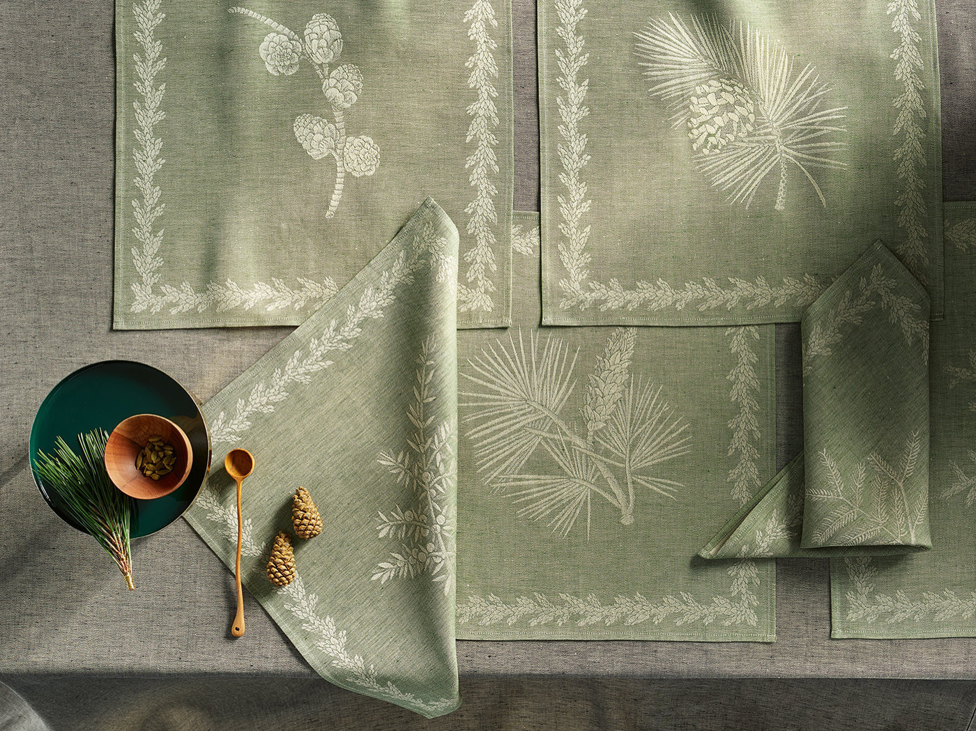 Жаккардовое салфетки «FORESTA» отсылает к природе и к новогодним празникам в зависимости от убранства дома. Почувствуйте себя унесенными в благоухающий сосновым воском лес каждый раз, когда вы тянетесь к ним.
