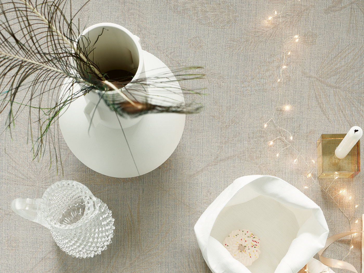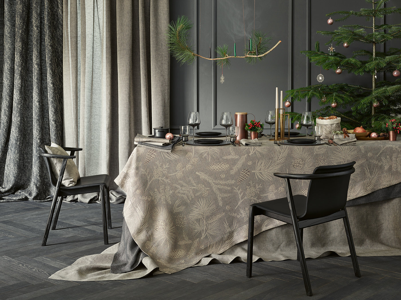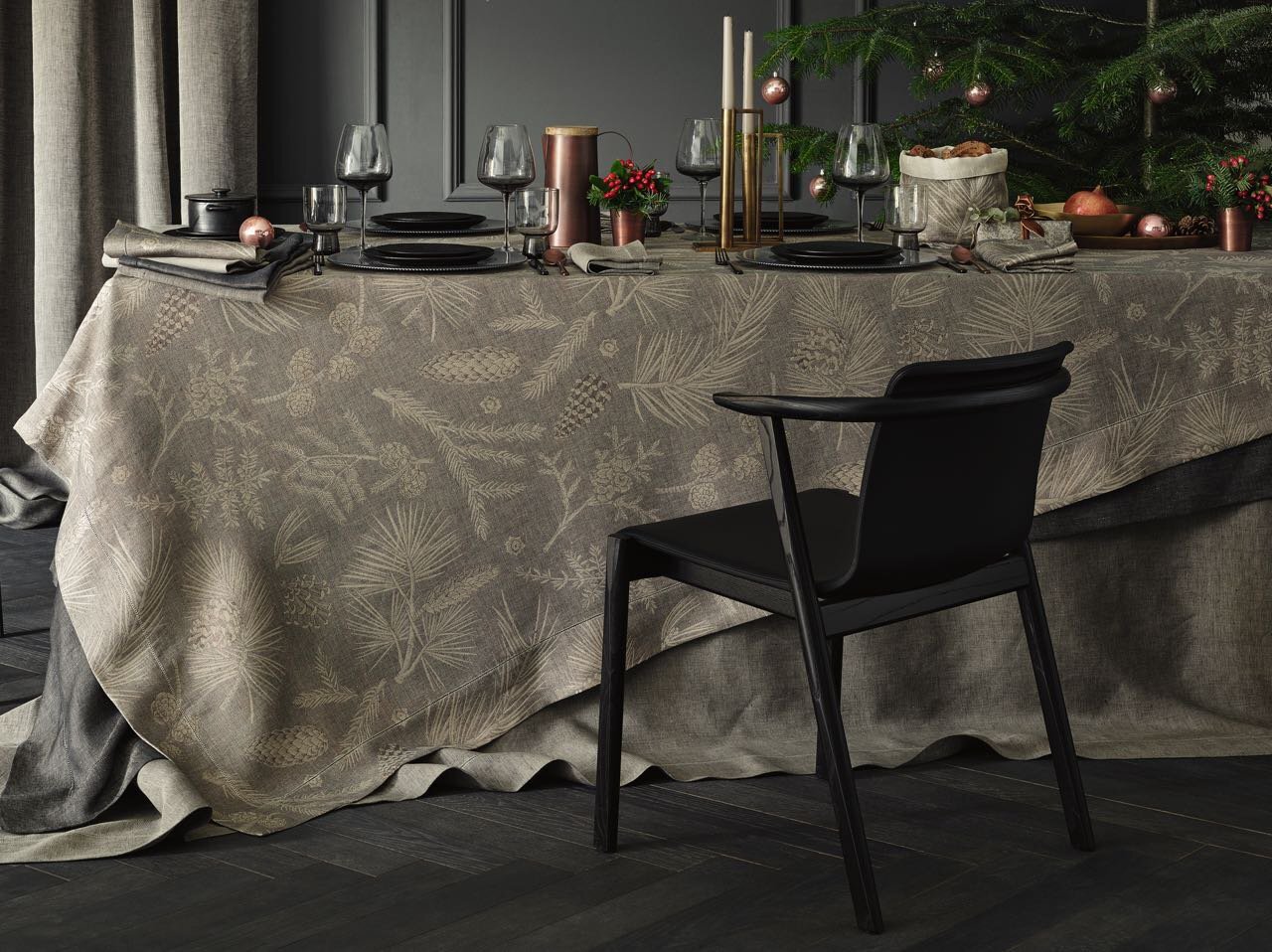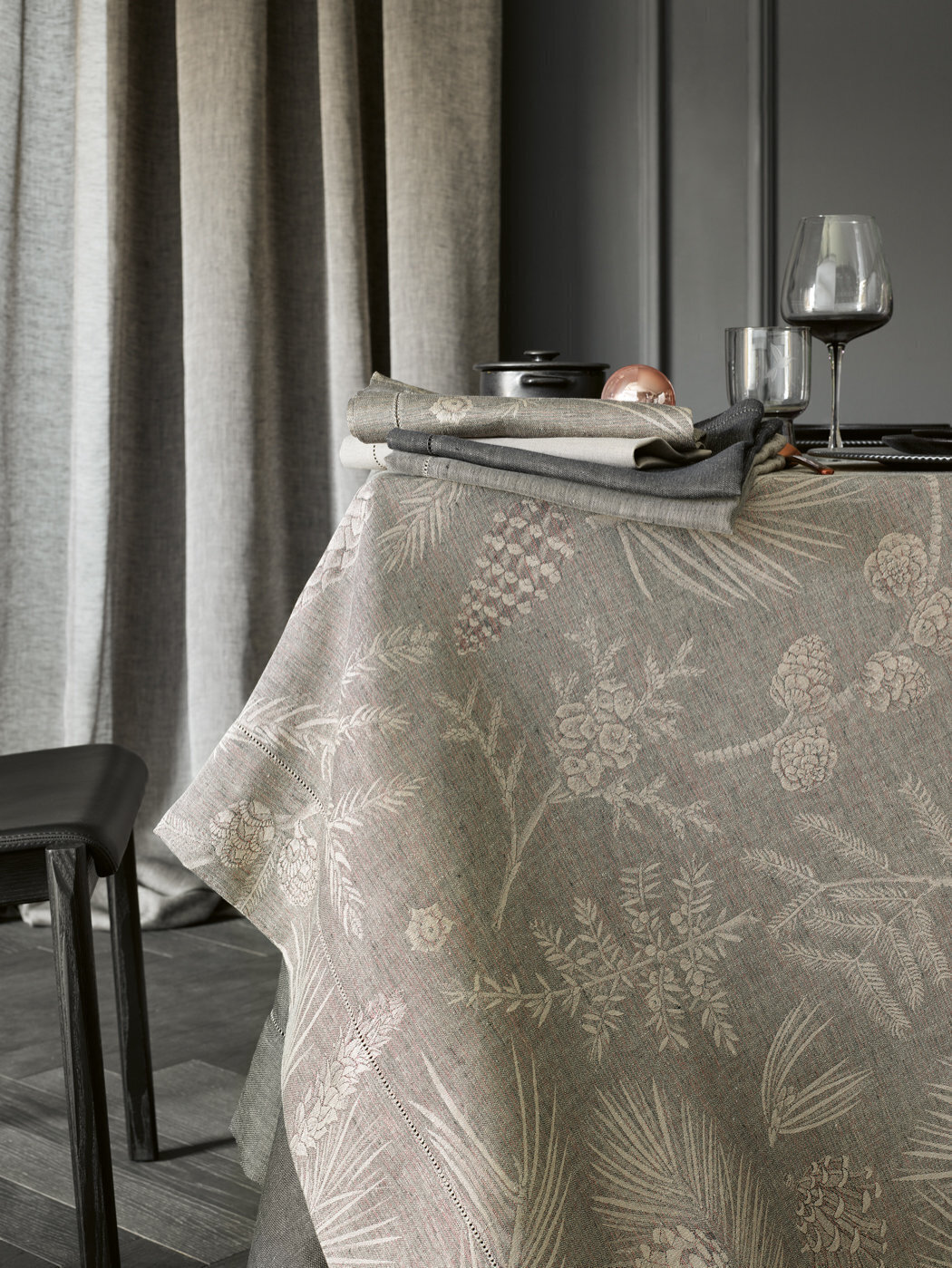 Декоративная скатерть от Leitner Leinen с красивым дизайном FORESTA- это особенная приманка для накрытого стола, очаровывает своим великолепным декором из разных хвойных деревьев с шишками, таких как сосна, дерево жизни Хиба, лиственница, можжевельник, пихта и пихта Дугласа. Leitner Leiner с мастерской точностью плетет пряжу из европейского льна и тонкого хлопка - из пряжи высшего качества с тончайшими нюансами.