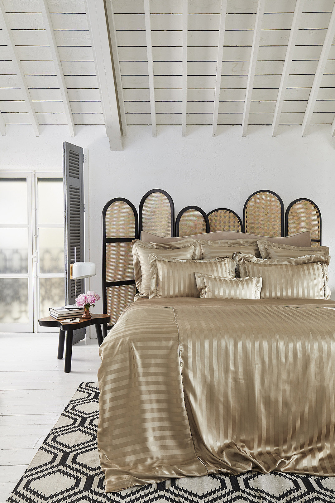 Этот жаккардовый принт - идеальный выбор для тех, кто ищет сильный дизайн в классическом цвете. Простыня имеет простой песочный цвет, и наволочки также можно приобрести в однотонном тоне, чтобы смешивать и сочетать с наволочками с рисунком.