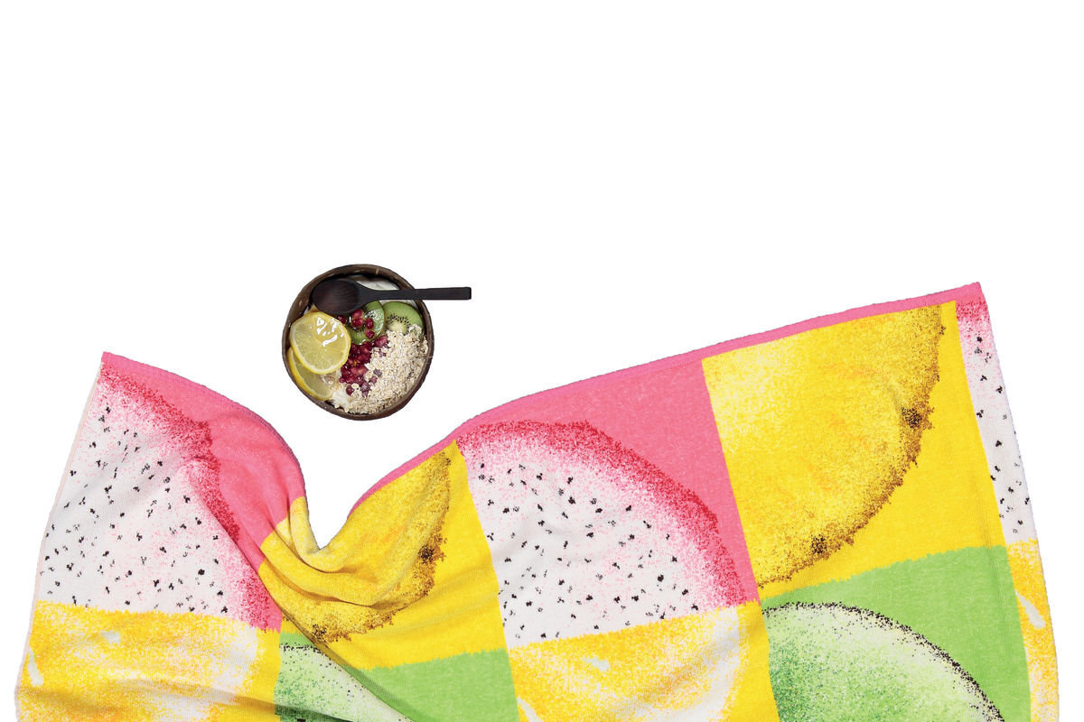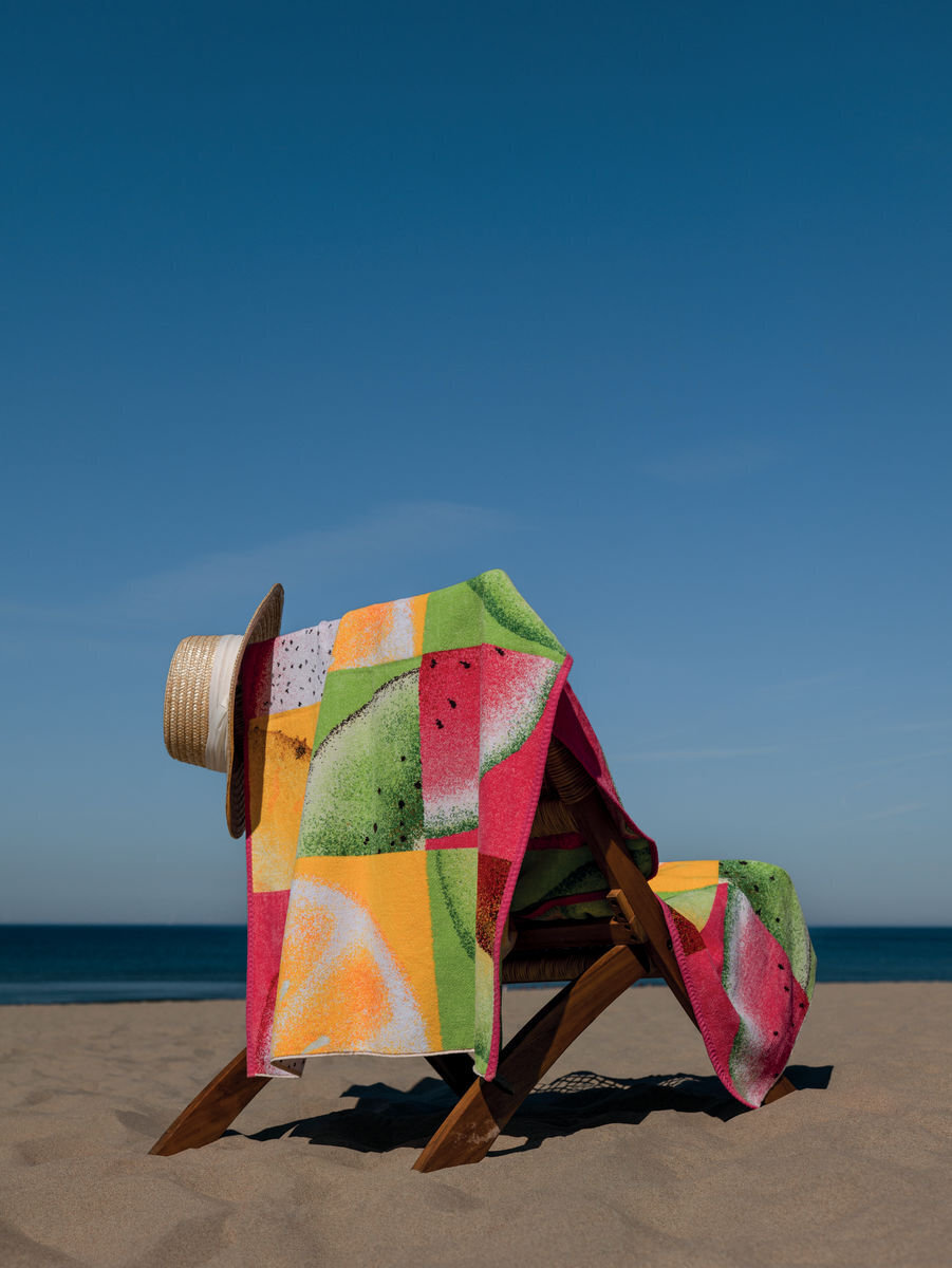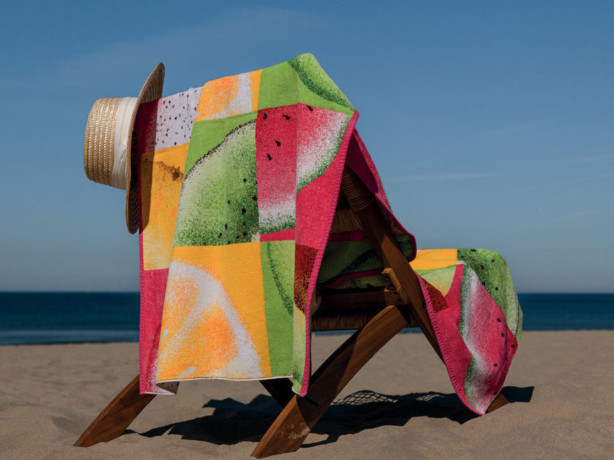- Коллекция состоит из полотенец, маленькой косметички, полотенец для пляжа и сауны