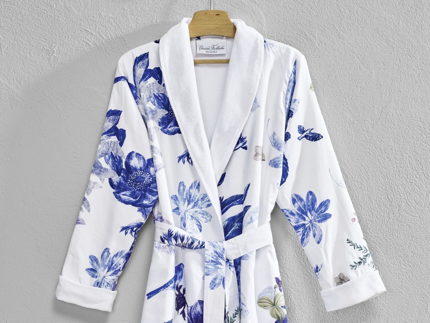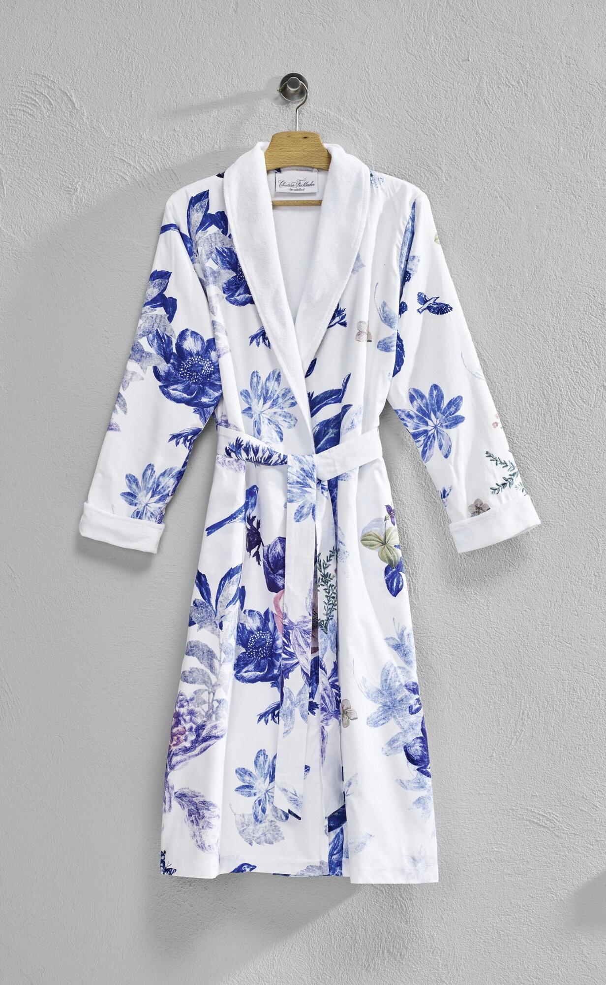 В дополнение к коллекции постельного белья Floralpin Christian Fischbacher представляет женский халат в дизайне FLORALPIN. Внутри белая махровая ткань Dreamflor, халат имеет воротник шалькой и длину около 120 см. Изделия Dreamflor производятся в Швейцарии и соответствуют требованиям Oeko-Tex Standard 100.