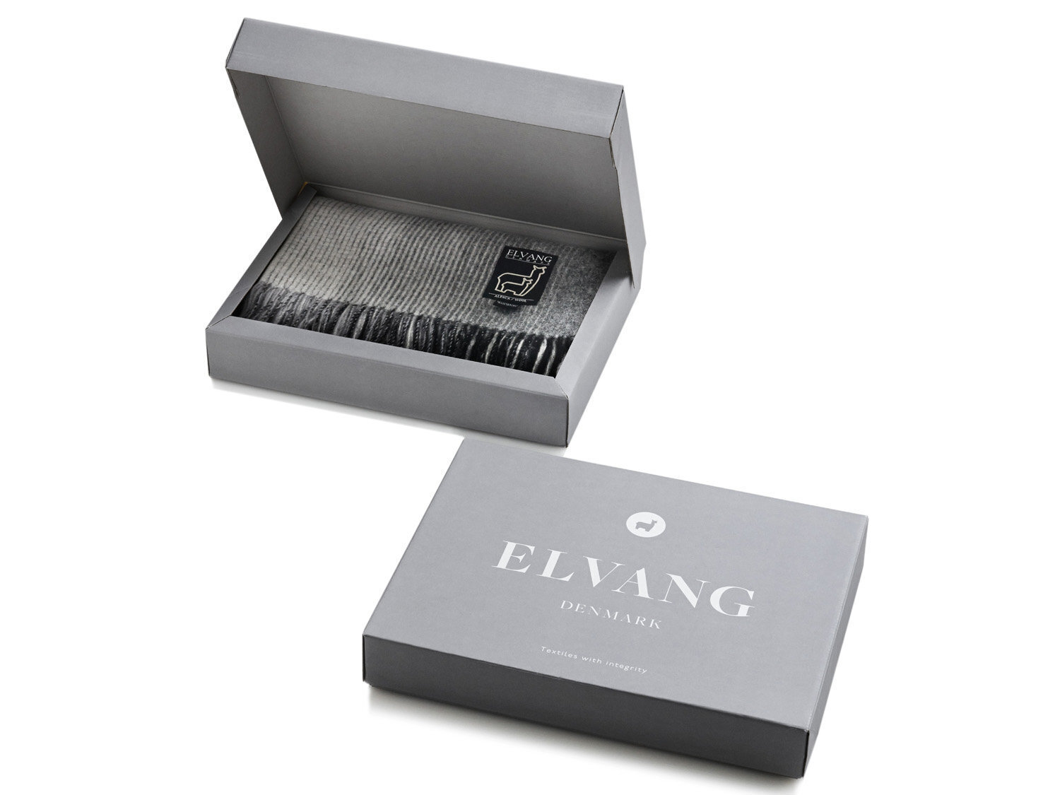 Подарочная коробка с логотипом бренда ELVANG для пледов и шарфов в трех габаритах:
