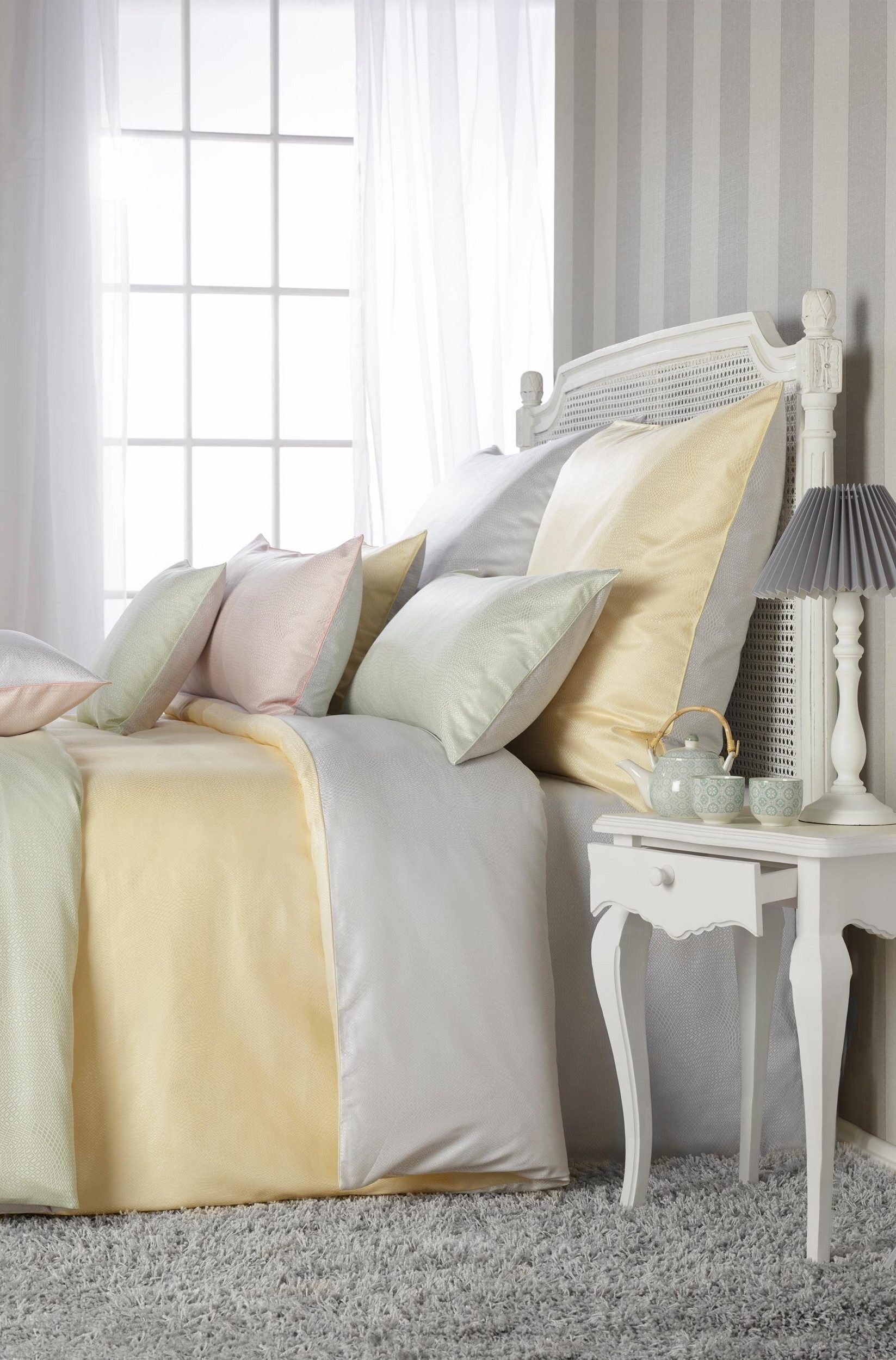 Классический дизайн GWEN выполнен в двухслойном качестве переплетенной нитью, создавая двухстронние (реверсивное) полотно. В результате получается сказочное, особенно высококачественное, долговечное и плотно сплетенное постельное белье, узор которого выглядит очень нежно с шелковым отливом в зависимости от света. Декоративный кант в наволочках подчеркивает благородный дизайн и вносит завершенность.