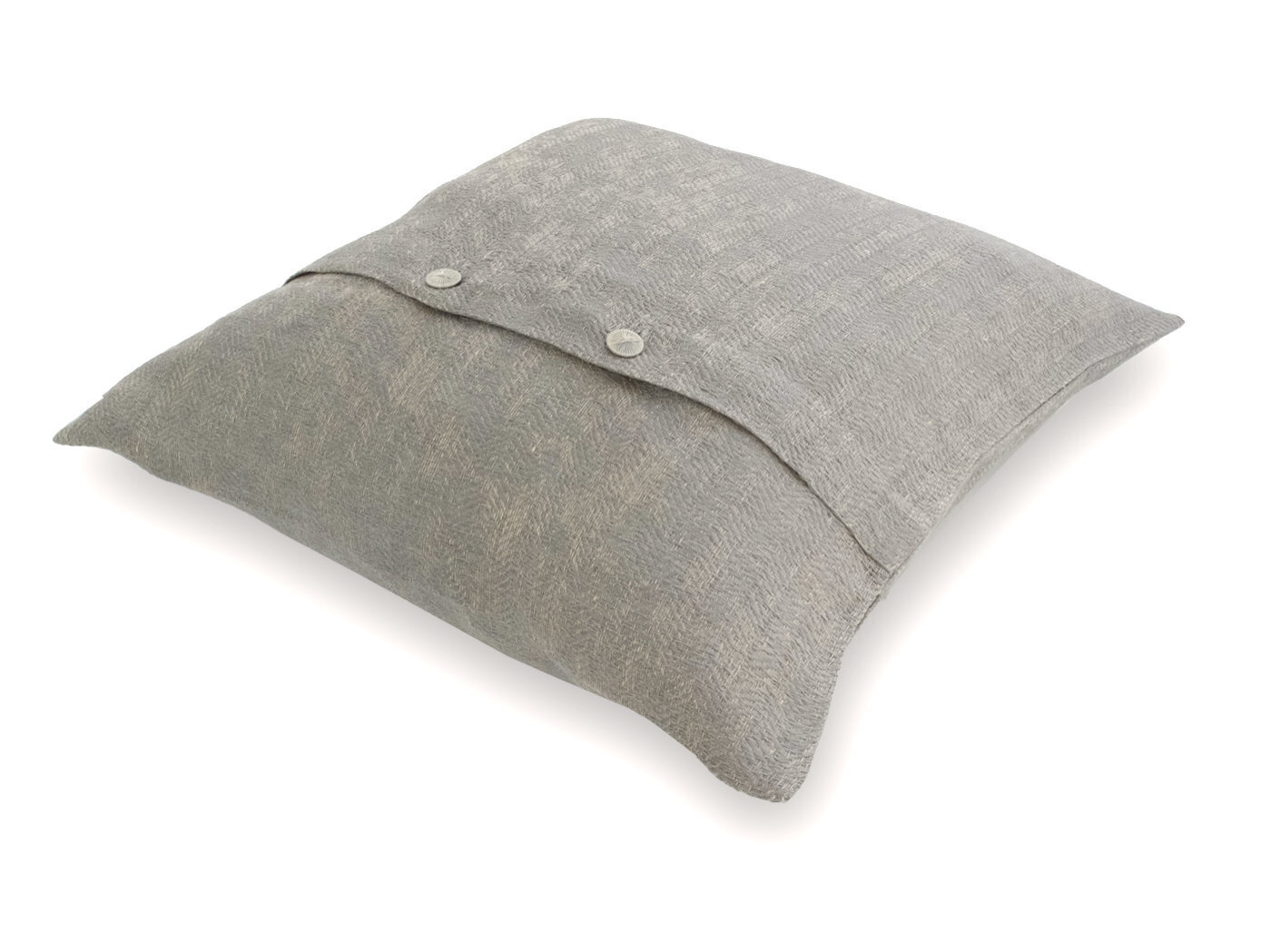 Технически сложная реализация этой ткани с гармоничным, чистым эффектом делает наволочку подушки очень современной. Неброский светло-серый переливается высококачественной льняной пряжей поверх нижней ткани льняного цвета. Идеально сочетается с яркими диванами. Особой деталью являются закручиные пуговицы на задней части подушки в цветовой гамме.