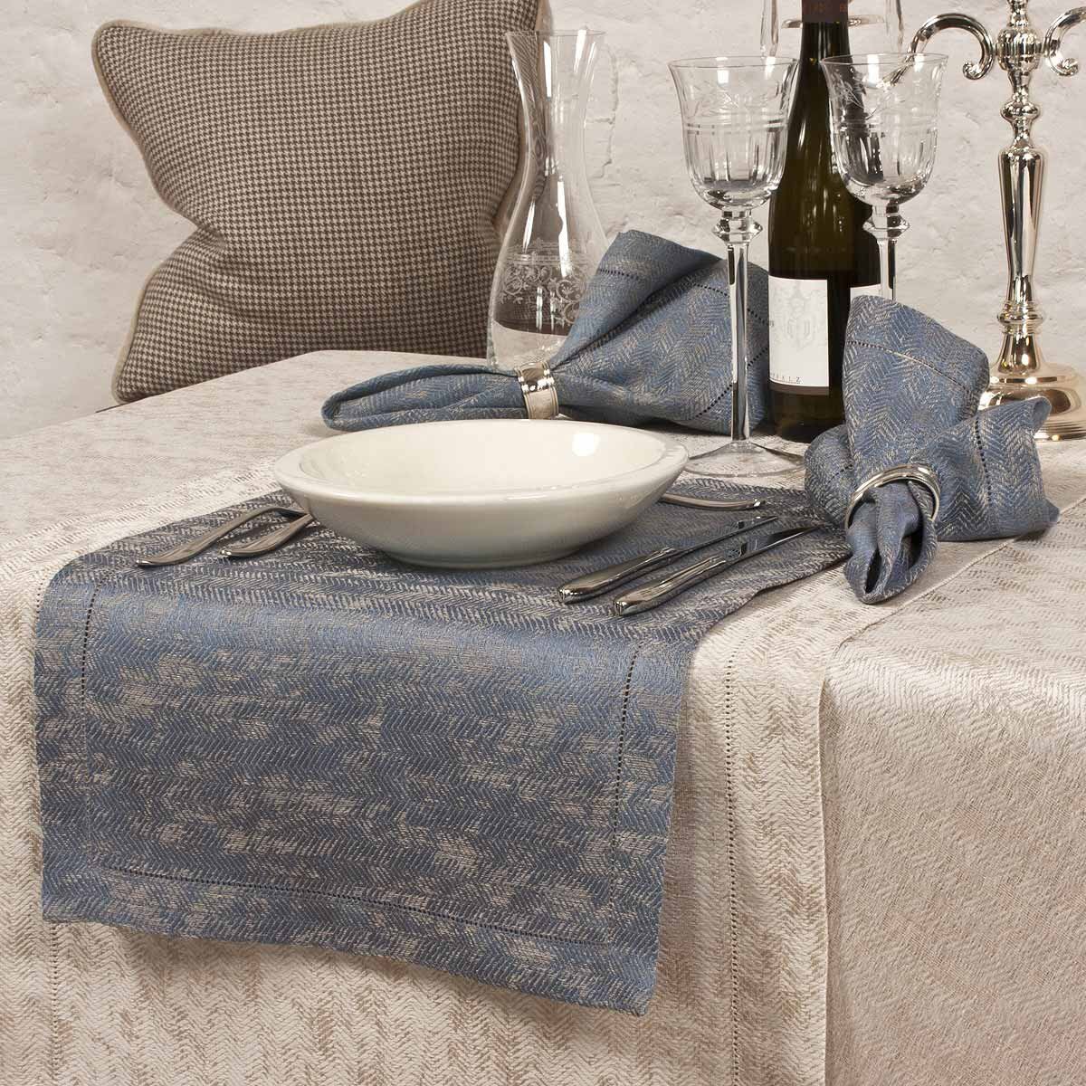 Легкий жаккардовый рисунок на слегка пестром фоне придает вашему столу празднично элегантный штрих.