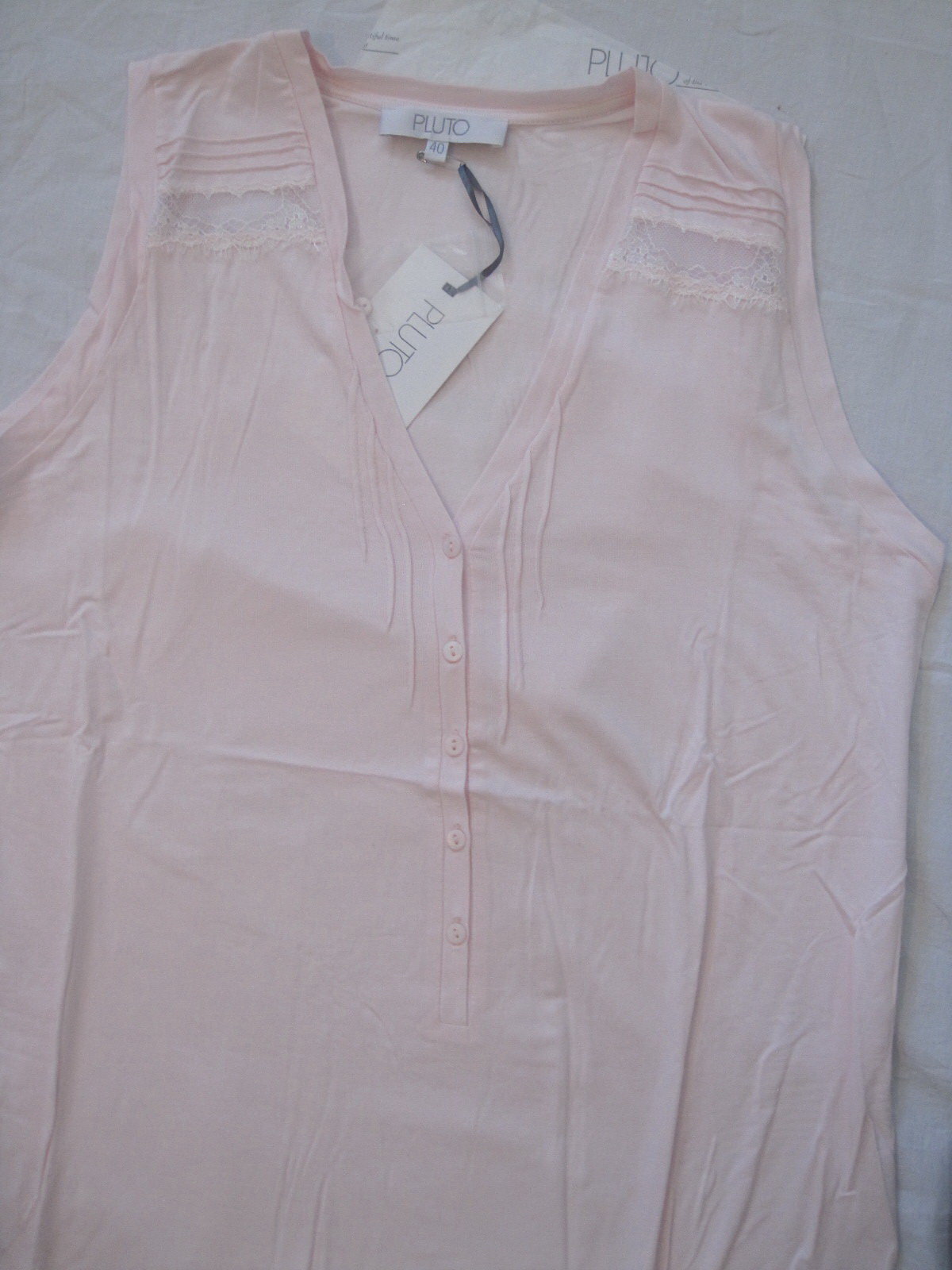 Сорочка  без рукавов  из нежного трикотажа и декоративными ставками кружева от бельгийской компании PLUTO