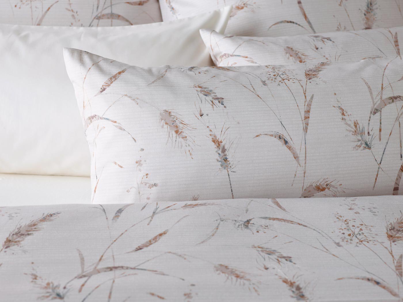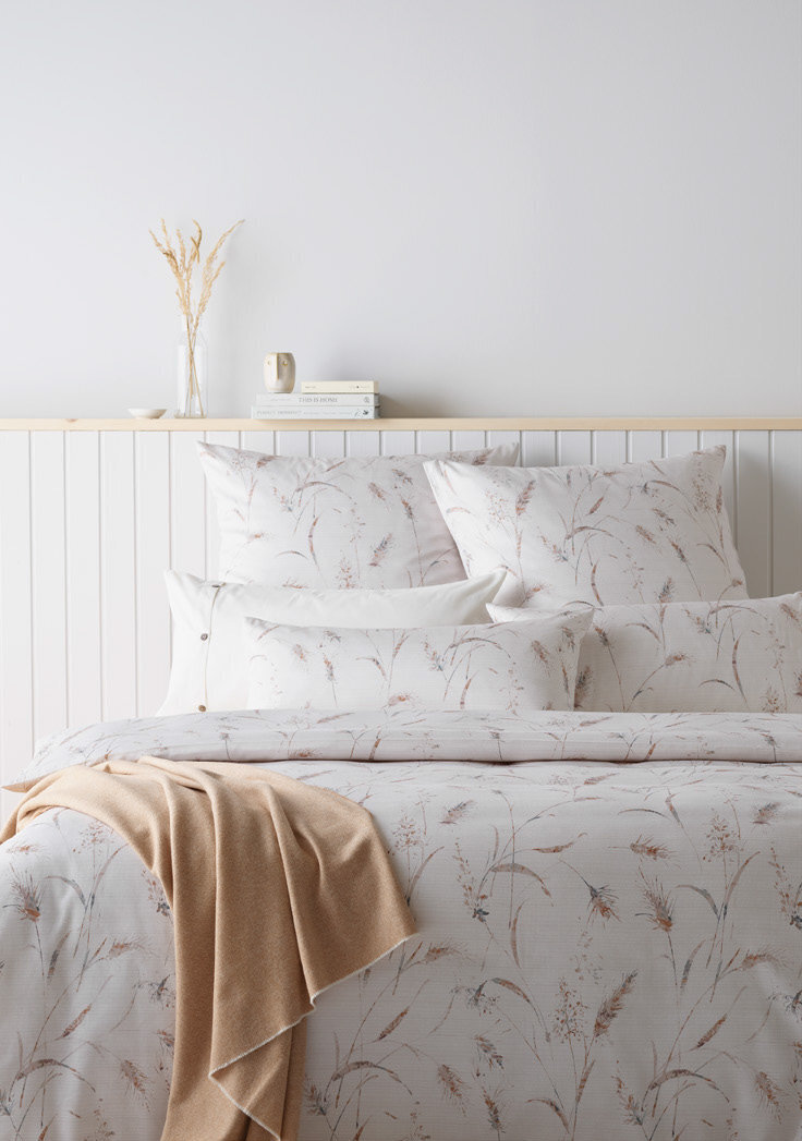 Дизайн HARMONY из коллекции «Pure» привносит прикосновение природы в каждую спальню благодаря нежным травам и колоскам. «Тихие» цвета выглядят оригинально и сдержанно на светлом фоне и вносят в общую картину уютную расслабленность..