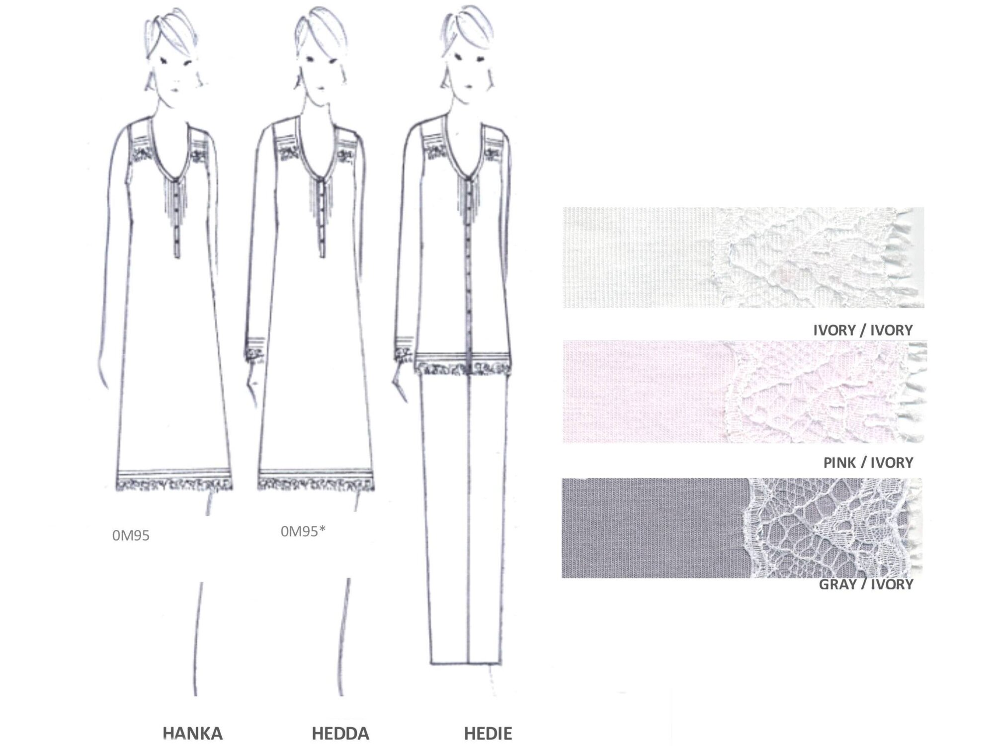 HEDIE, Pluto пижама трикотажная с кружевом, 93% вискоза,7% эластан цвет:gray/ivory, размер 40/М