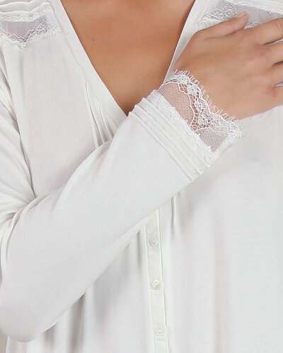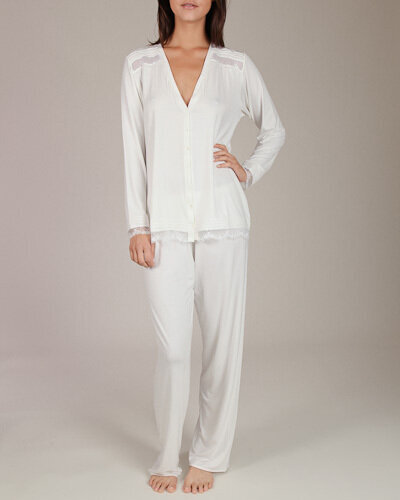 Элегантная женственная пижама   из нежного трикотажа и декоративными ставками кружева от бельгийской компании PLUTO