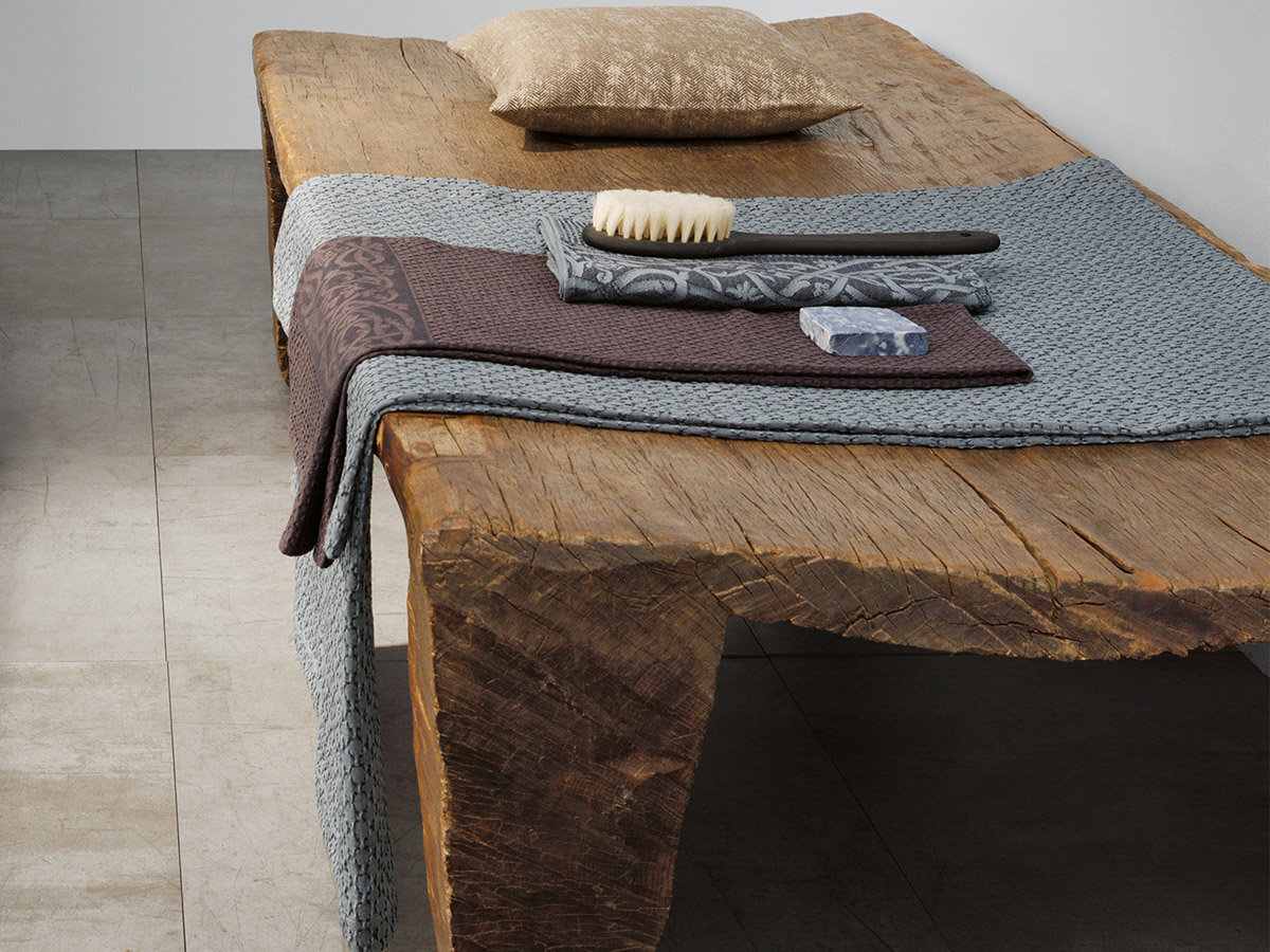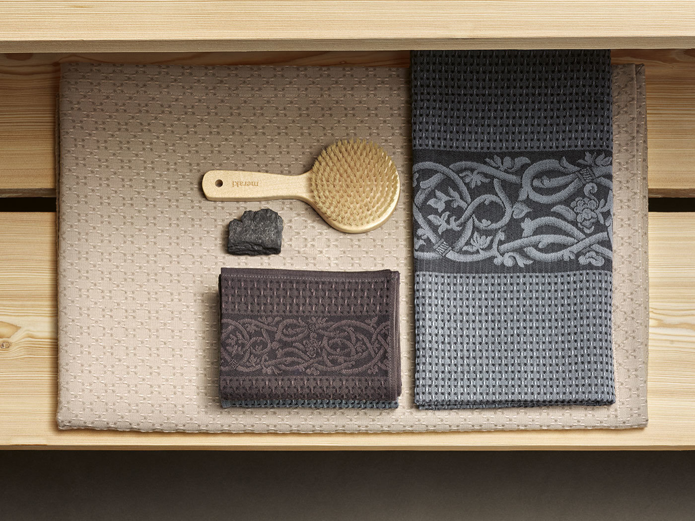 "Helix" соткан из двух цветов пряжи, цветовая структура которых создает сотовую структуру воздушной ткани и придает пледу что-то определенное. Клетка для пике сопровождается одноименной тканью для пикирования с жаккардовым бордюром для ванной комнаты - и в этом смысле плед также можно использовать как щедрое полотенце для ванной или сауны. Немного пятнистый вид трех оттенков Smoke, Basalt и Pimento также очень хорошо вписывается на элегантный кожаный диван или кресло. Плед окаймлен на концах подгибов в виде конверта.