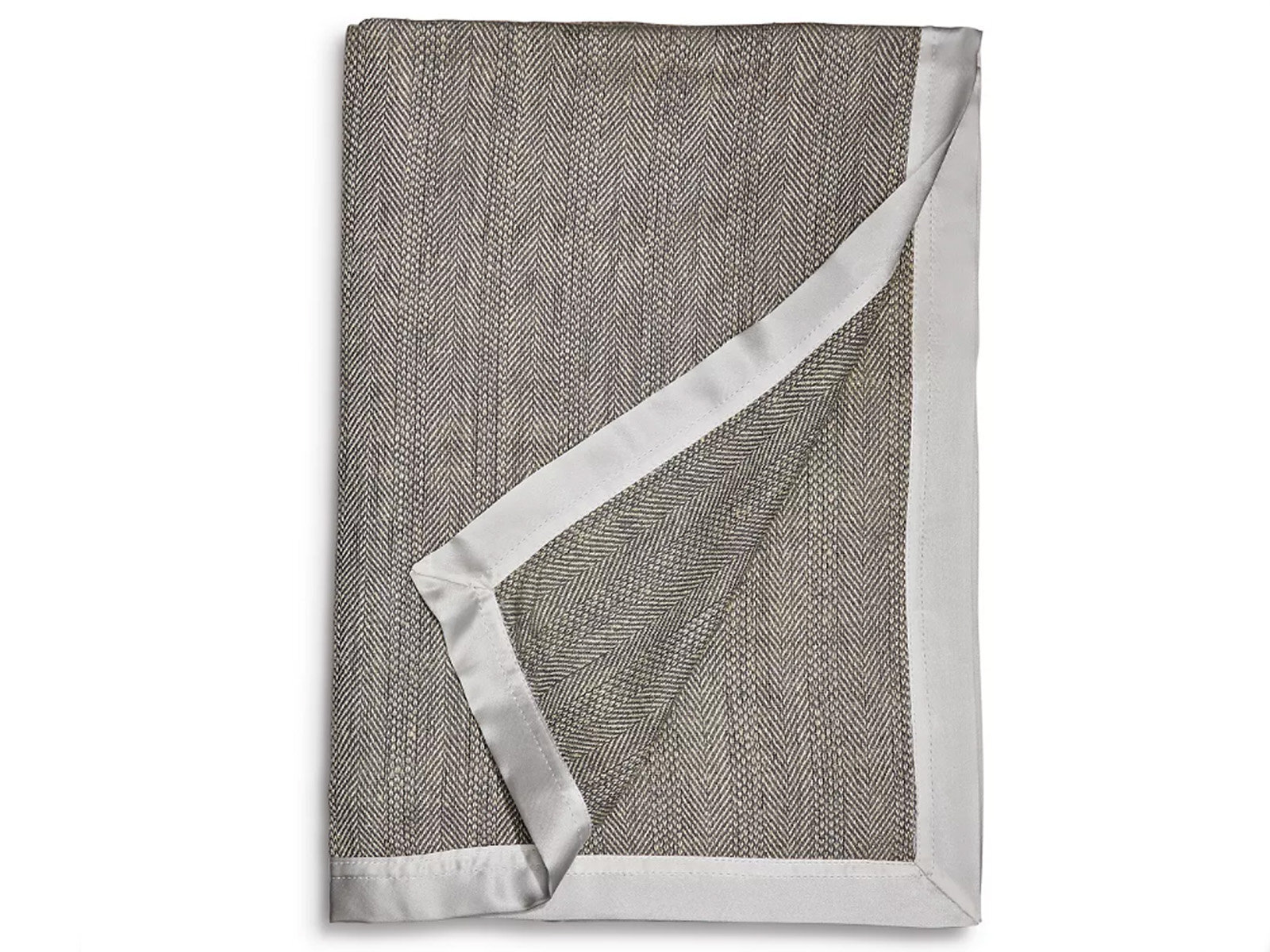 Плед обрамлен подходящей широкой шелковой каймой для стильного современного образа.